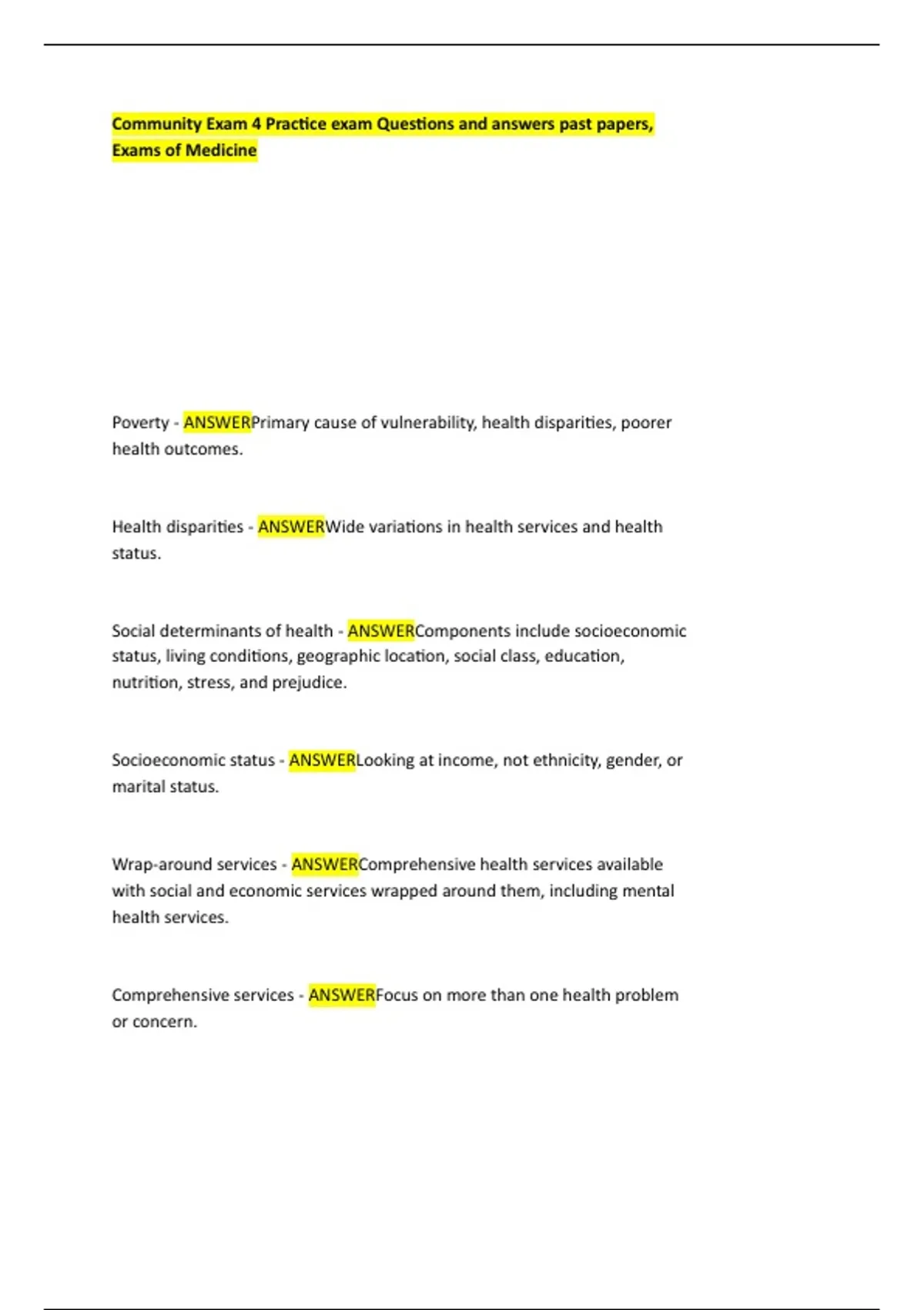 Community Exam 4 Practice exam Questions and answers past papers, Exams of Medicine