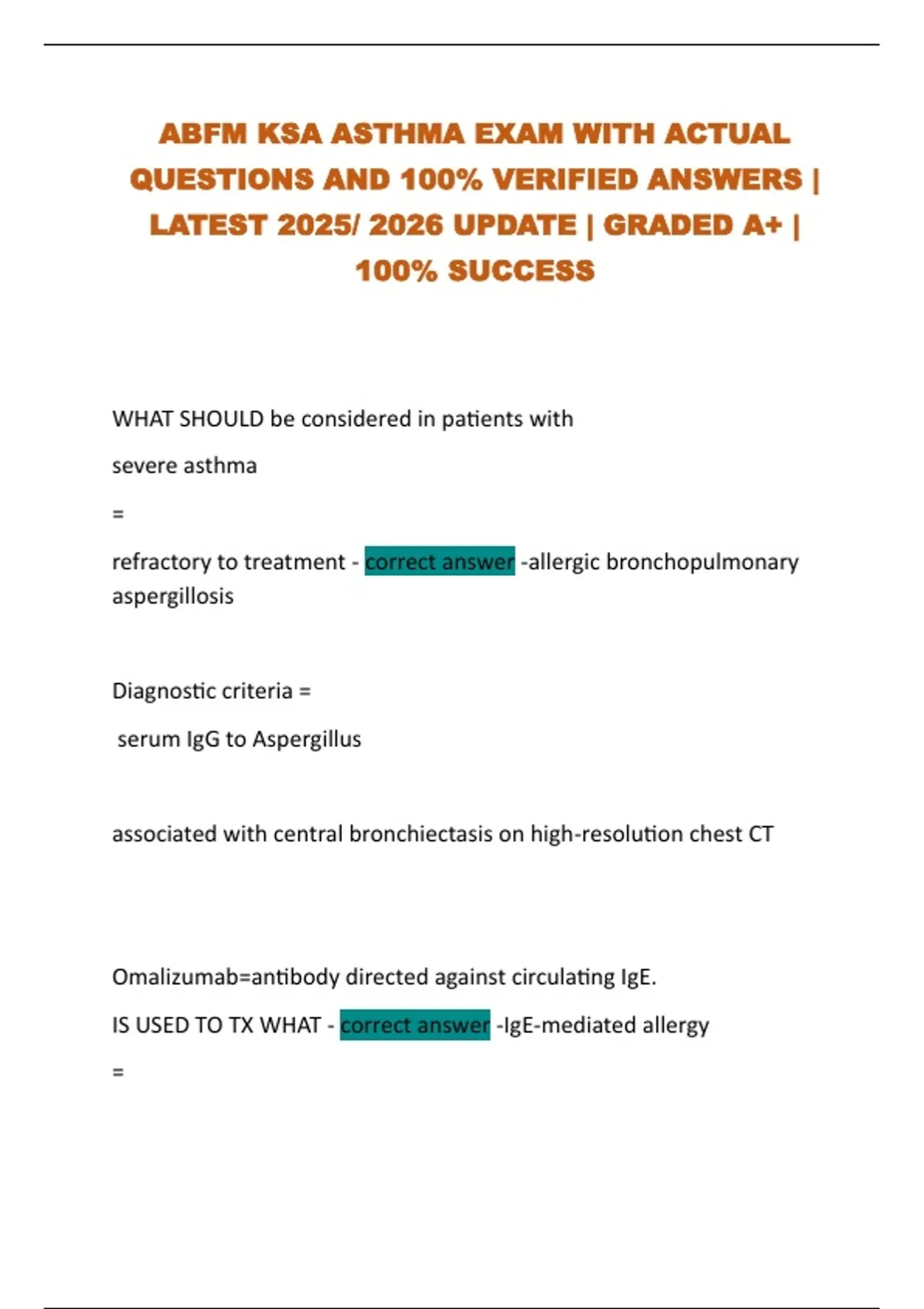 refractory to treatment - correct answer -allergic bronchopulmonary