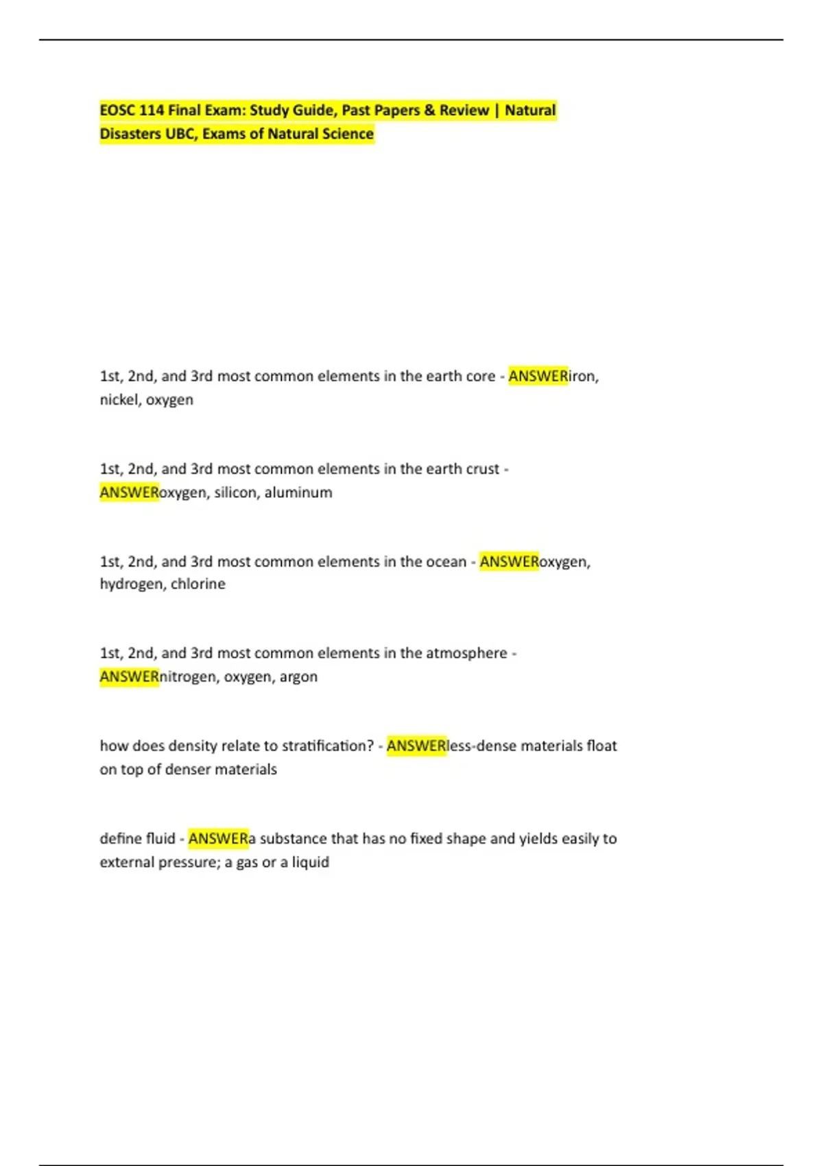 EOSC 114 Final Exam: Study Guide, Past Papers & Review | Natural