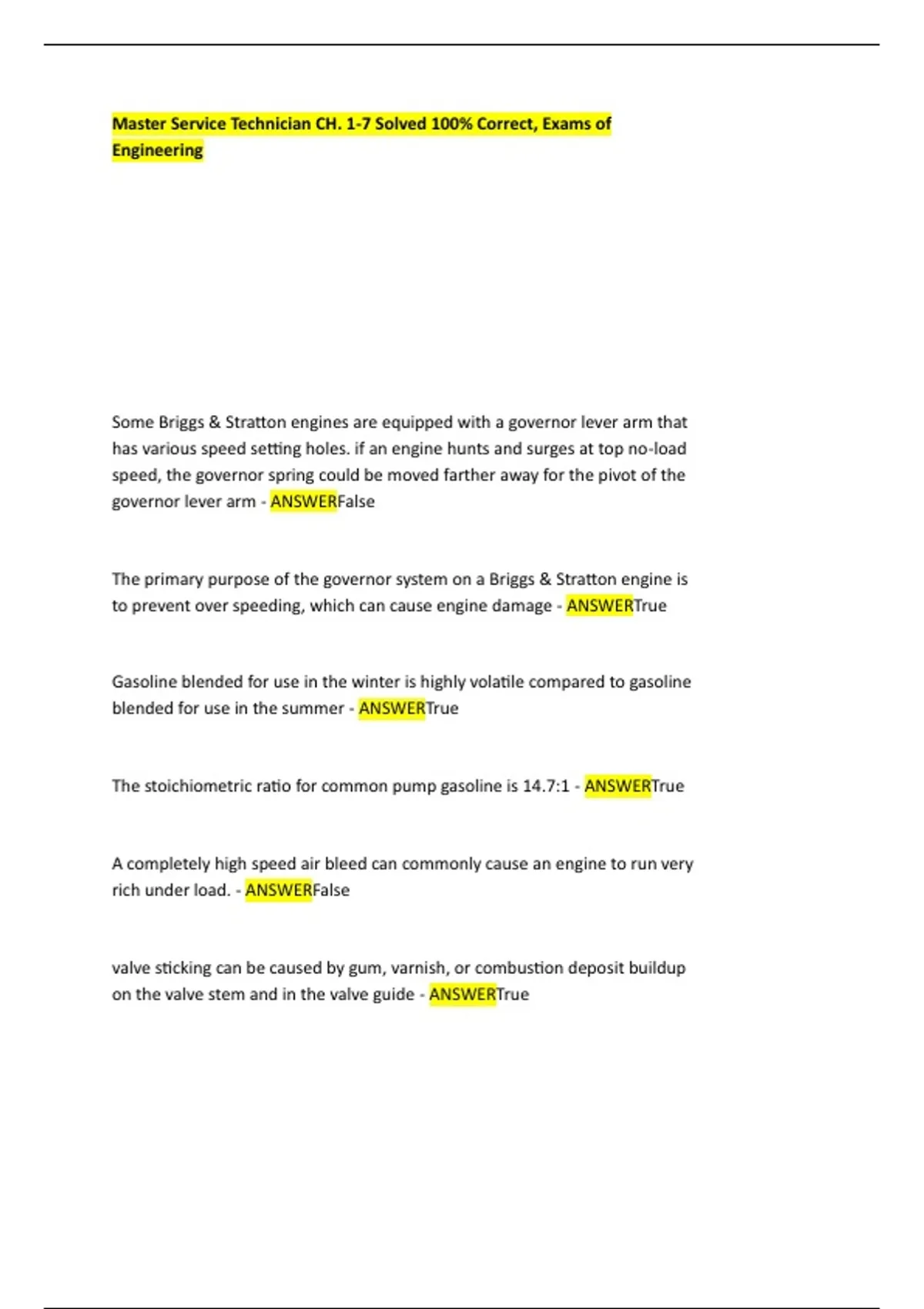 Master Service Technician CH. 1-7 Solved 100% Correct, Exams of
