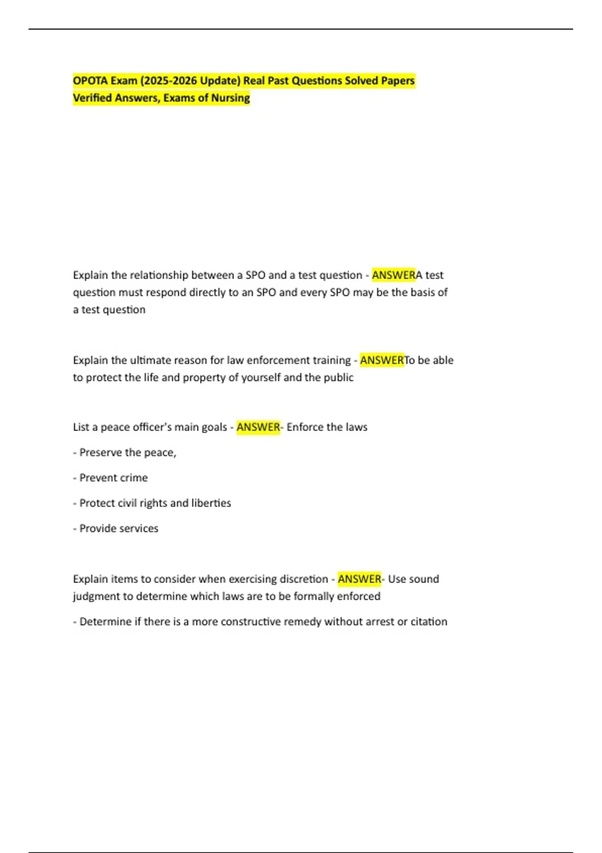 OPOTA Exam (2025-2026 Update) Real Past Questions Solved Papers
