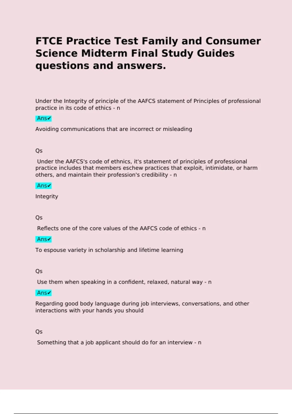 Under the AAFCS's code of ethnics, it's statement of principles of professional