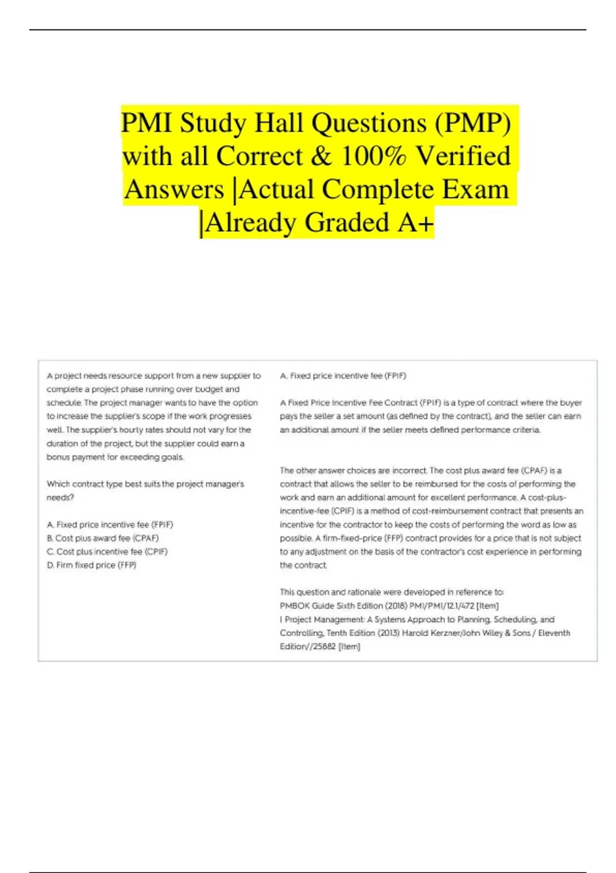 PMI Study Hall Questions (PMP) with all Correct & 100% Verified Answers |Actual Complete Exam |Already Graded A+