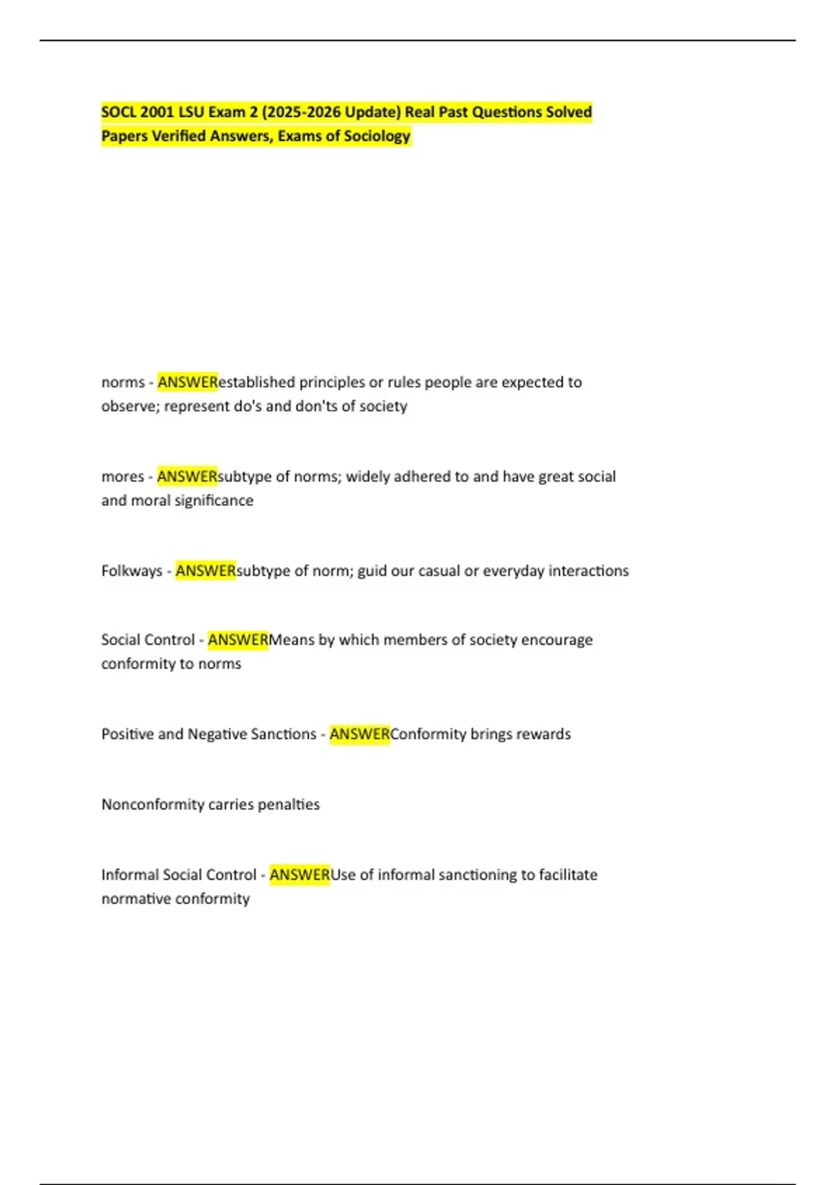 SOCL 2001 LSU Exam 2 (2025-2026 Update) Real Past Questions Solved
