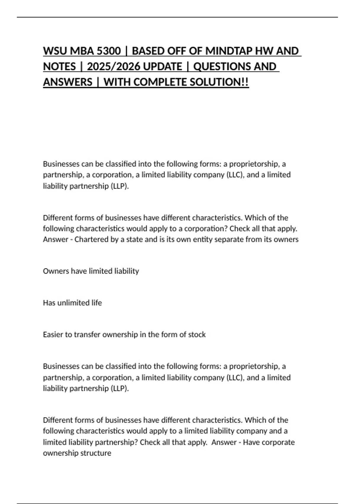 Different forms of businesses have different characteristics. Which of the