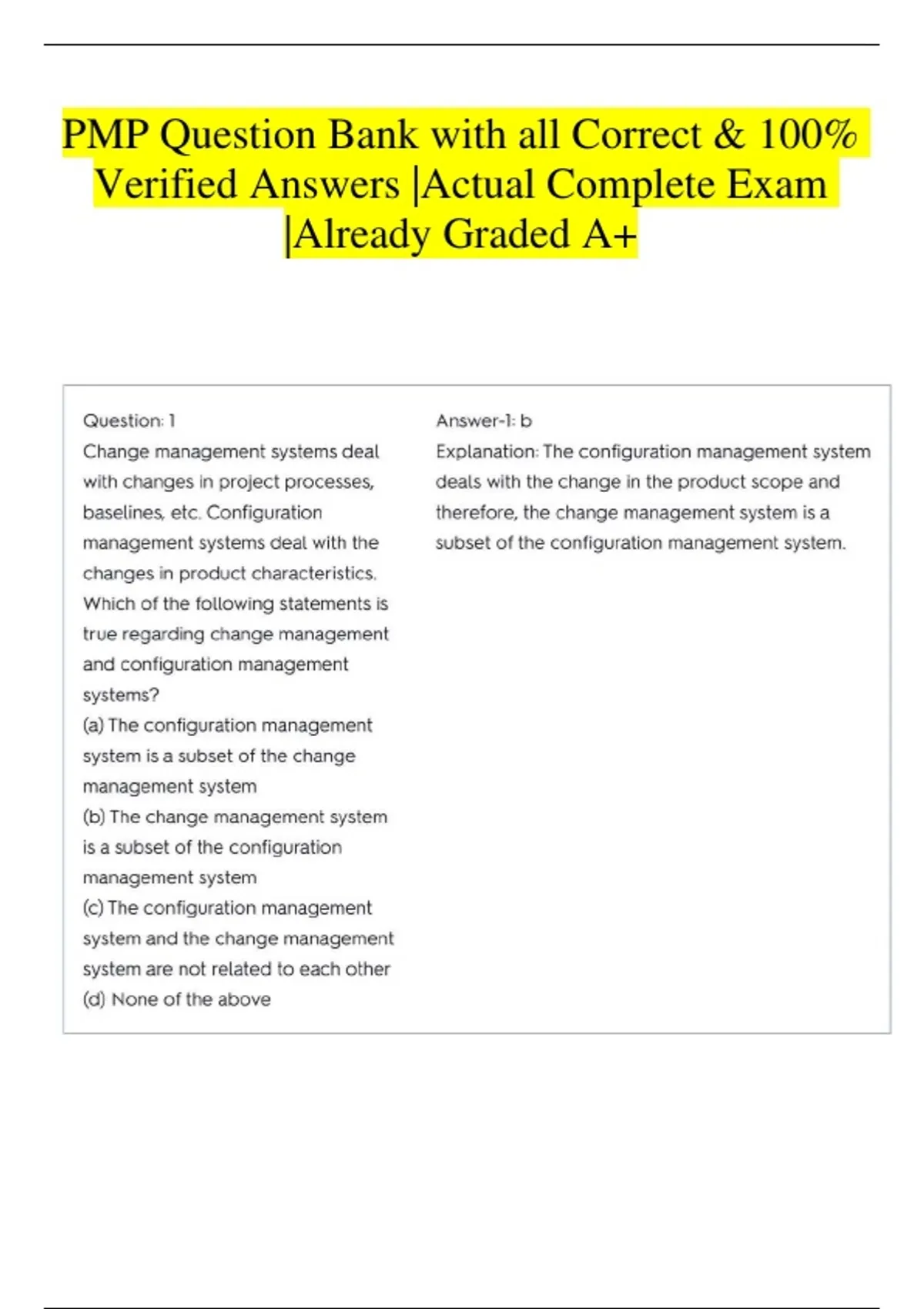 PMP Question Bank with all Correct & 100% Verified Answers |Actual Complete Exam |Already Graded A+