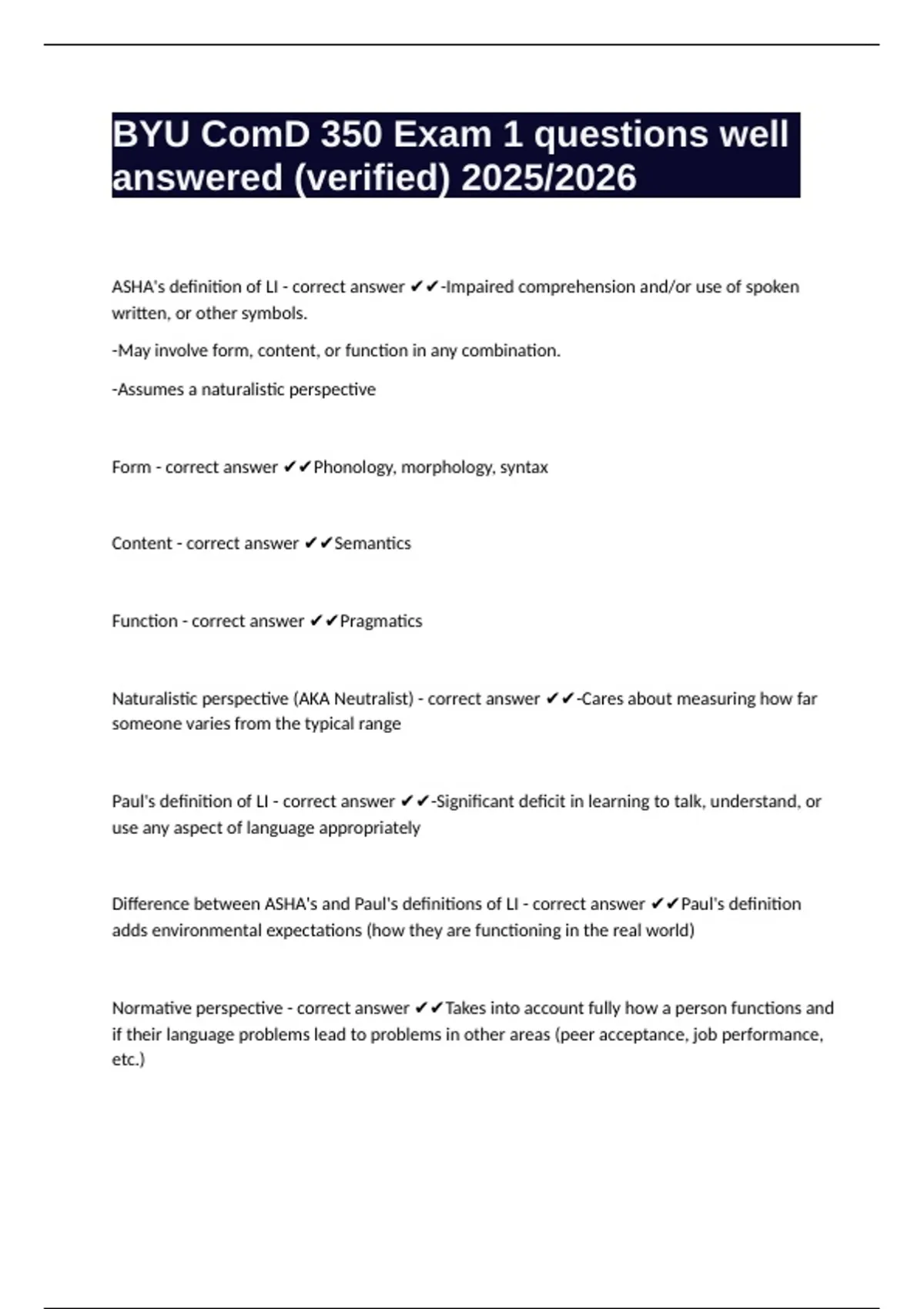 BYU ComD 350 Exam 1 questions well answered (verified) 2025/2026