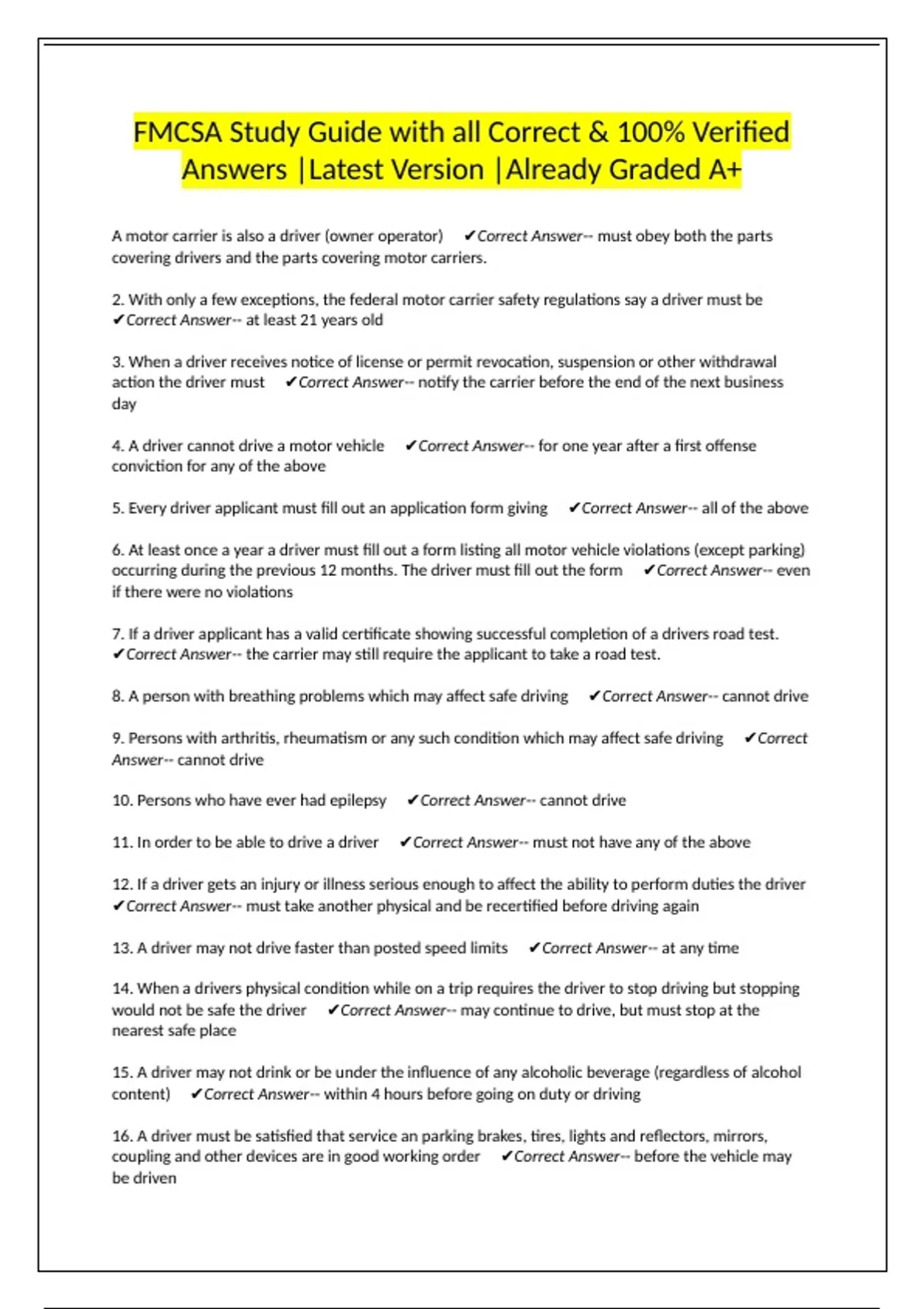 5. Every driver applicant must fill out an application form giving ✔Correct Answer-- all of the above