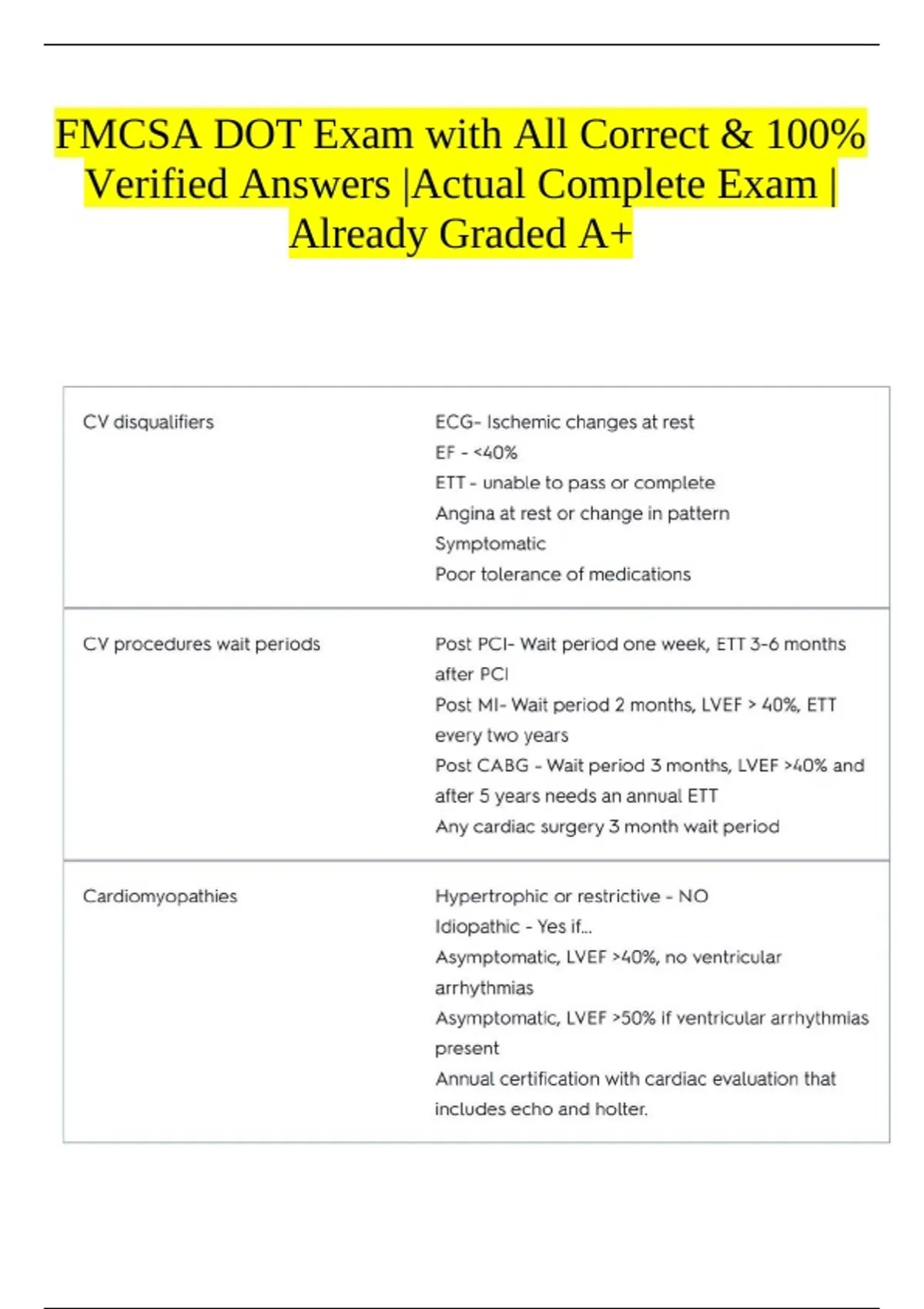 FMCSA DOT Exam with All Correct & 100% Verified Answers |Actual Complete Exam | Already Graded A+