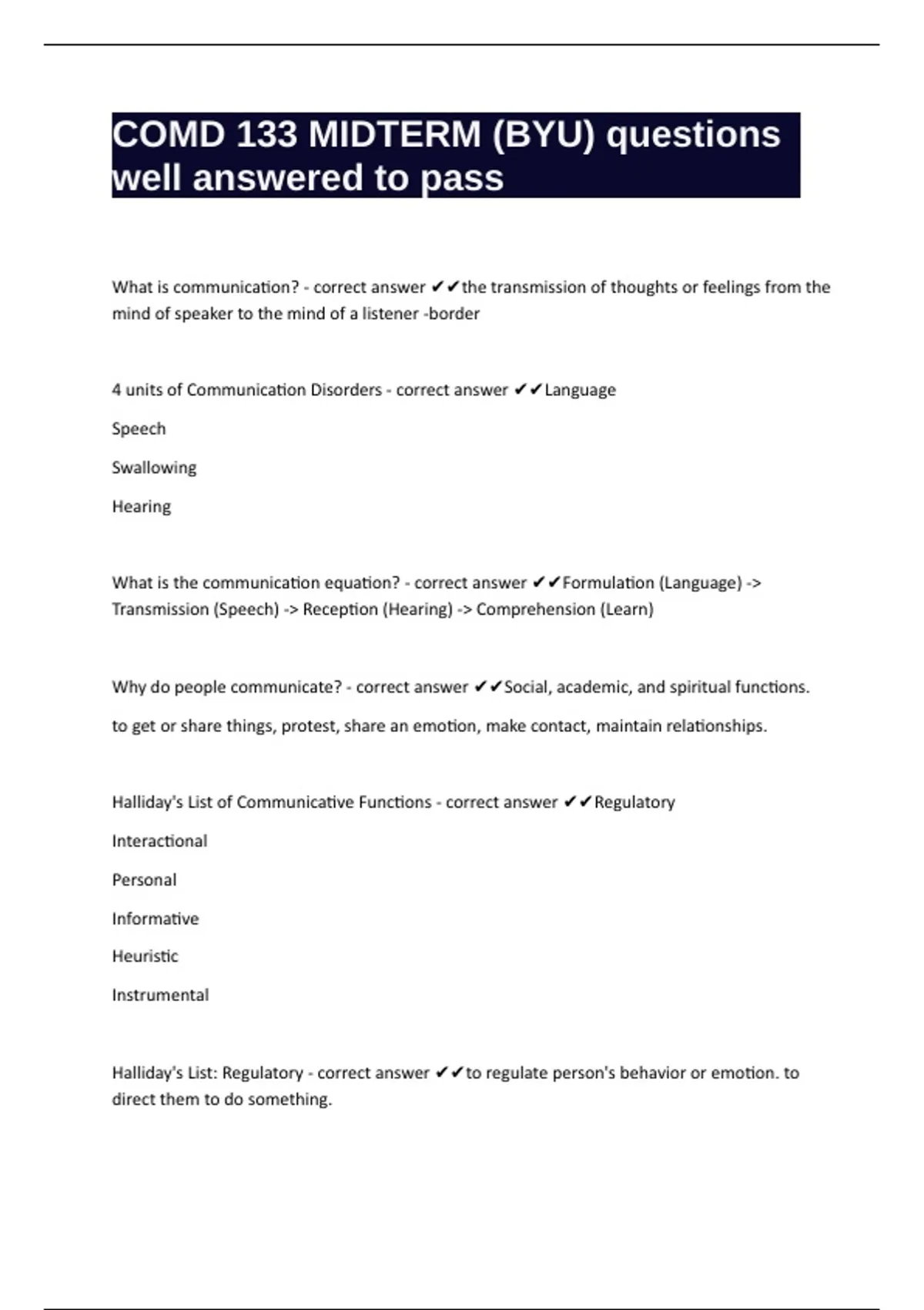 Why do people communicate? - correct answer ✔✔Social, academic, and spiritual functions.
