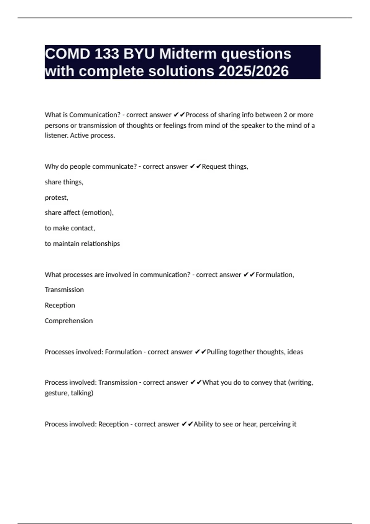 What is Communication? - correct answer ✔✔Process of sharing info between 2 or more