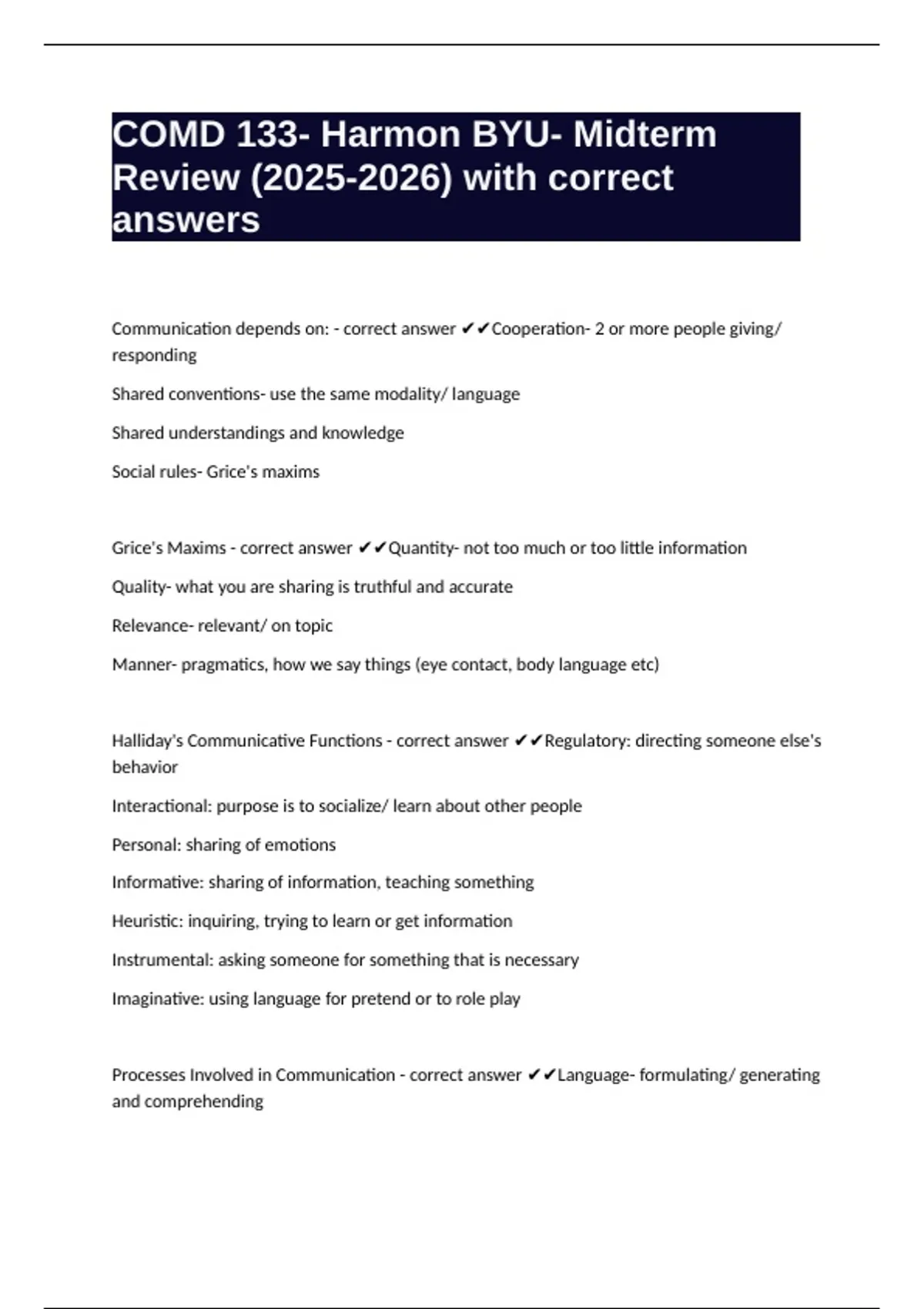 Grice's Maxims - correct answer ✔✔Quantity- not too much or too little information