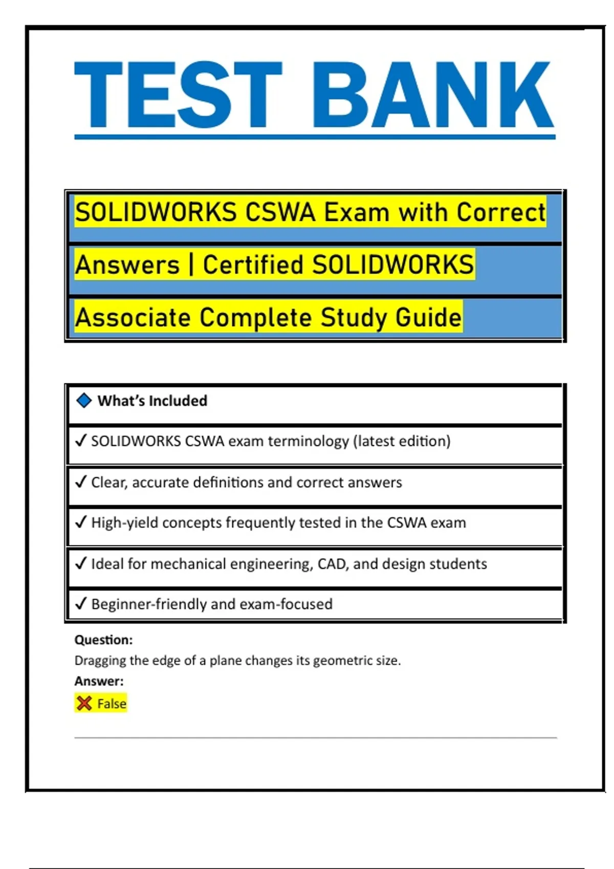 SOLIDWORKS CSWA Exam with Correct Answers | Certified SOLIDWORKS Associate Complete Study Guide Latest updated version| Brand new!!!
