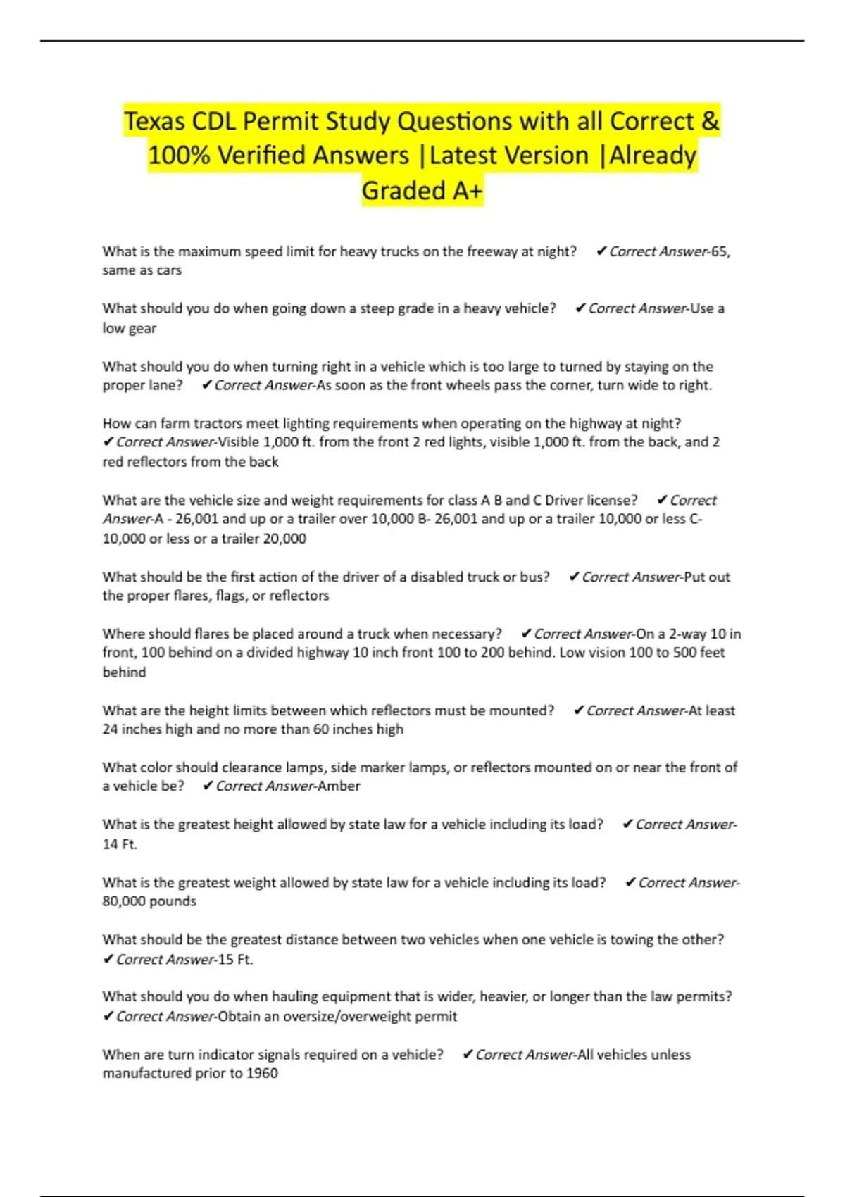 ✔Correct Answer-Obtain an oversize/overweight permit