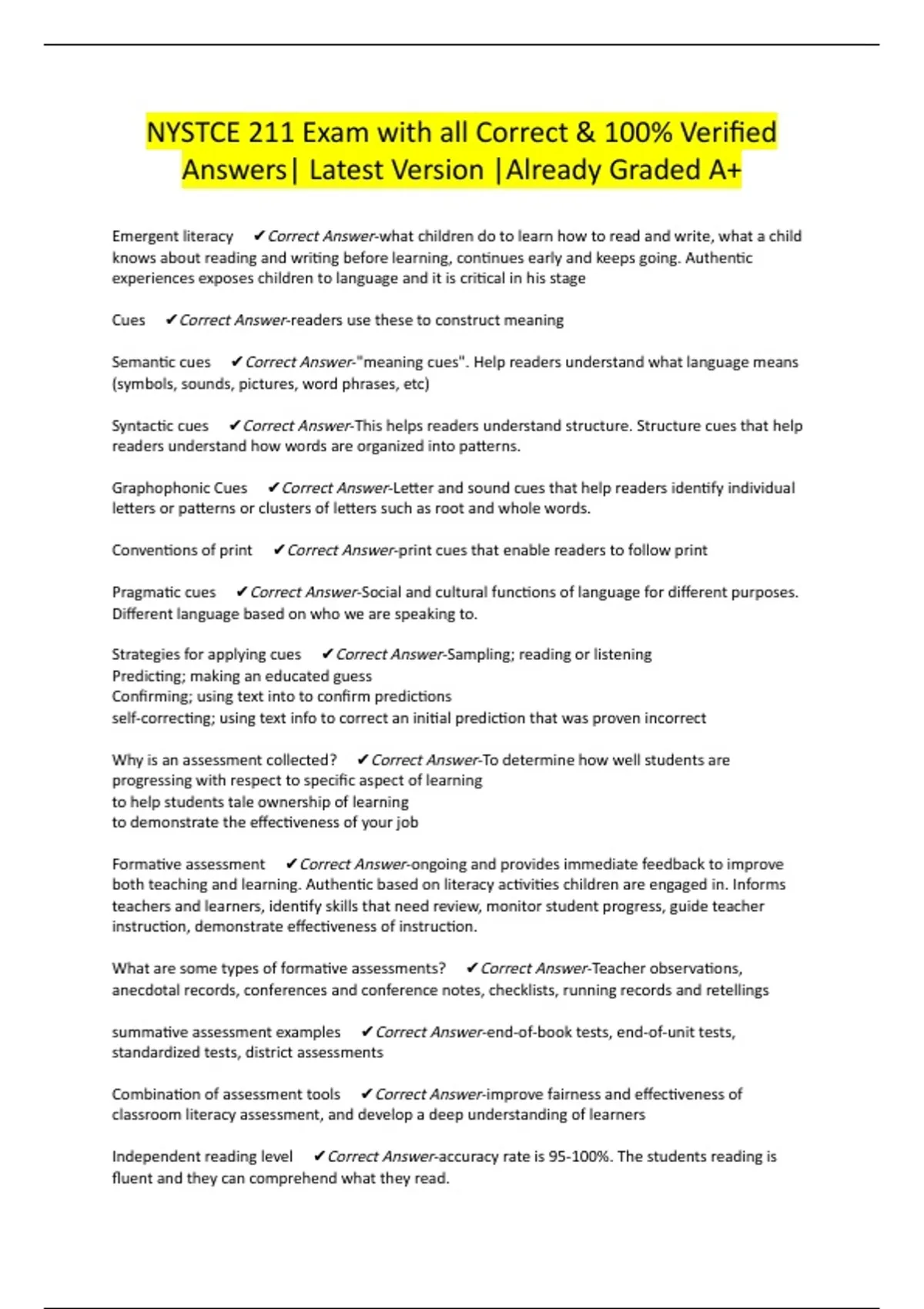 NYSTCE 211 Exam with all Correct & 100% Verified Answers| Latest Version |Already Graded A+