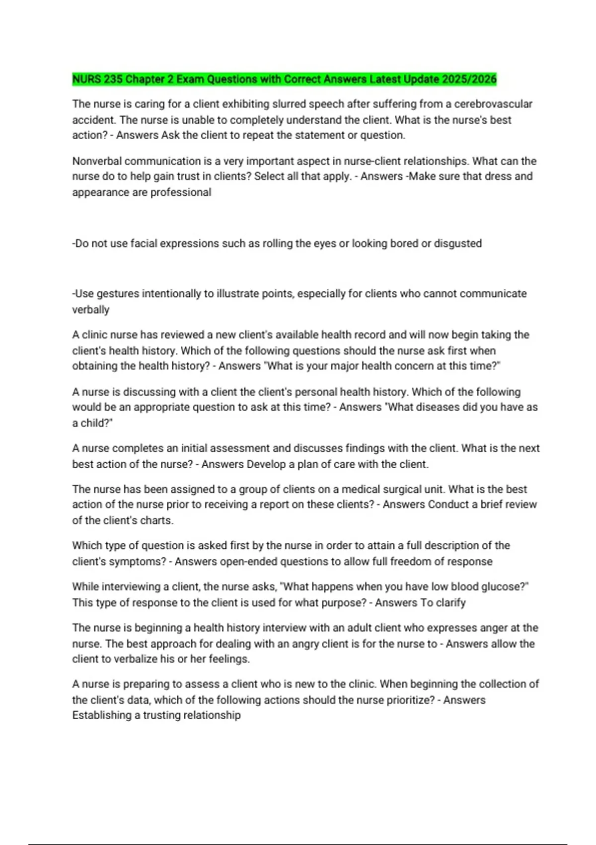 action of the nurse prior to receiving a report on these clients? - Answers Conduct a brief review