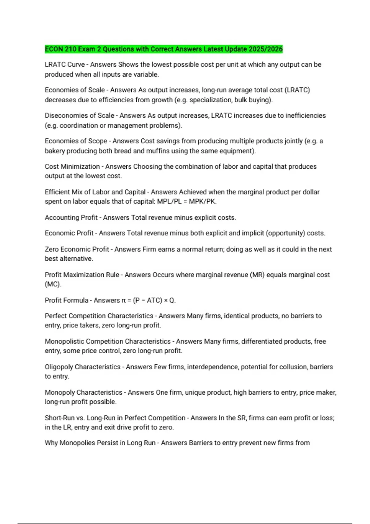 Economies of Scale - Answers As output increases, long-run average total cost (LRATC)