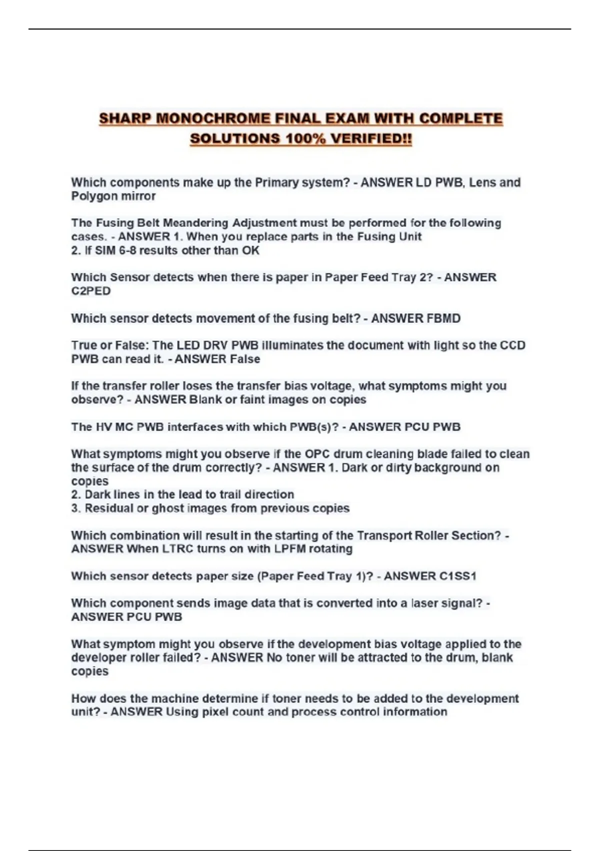 SHARP MONOCHROME FINAL EXAM WITH COMPLETE SOLUTIONS 100% VERIFIED!!...