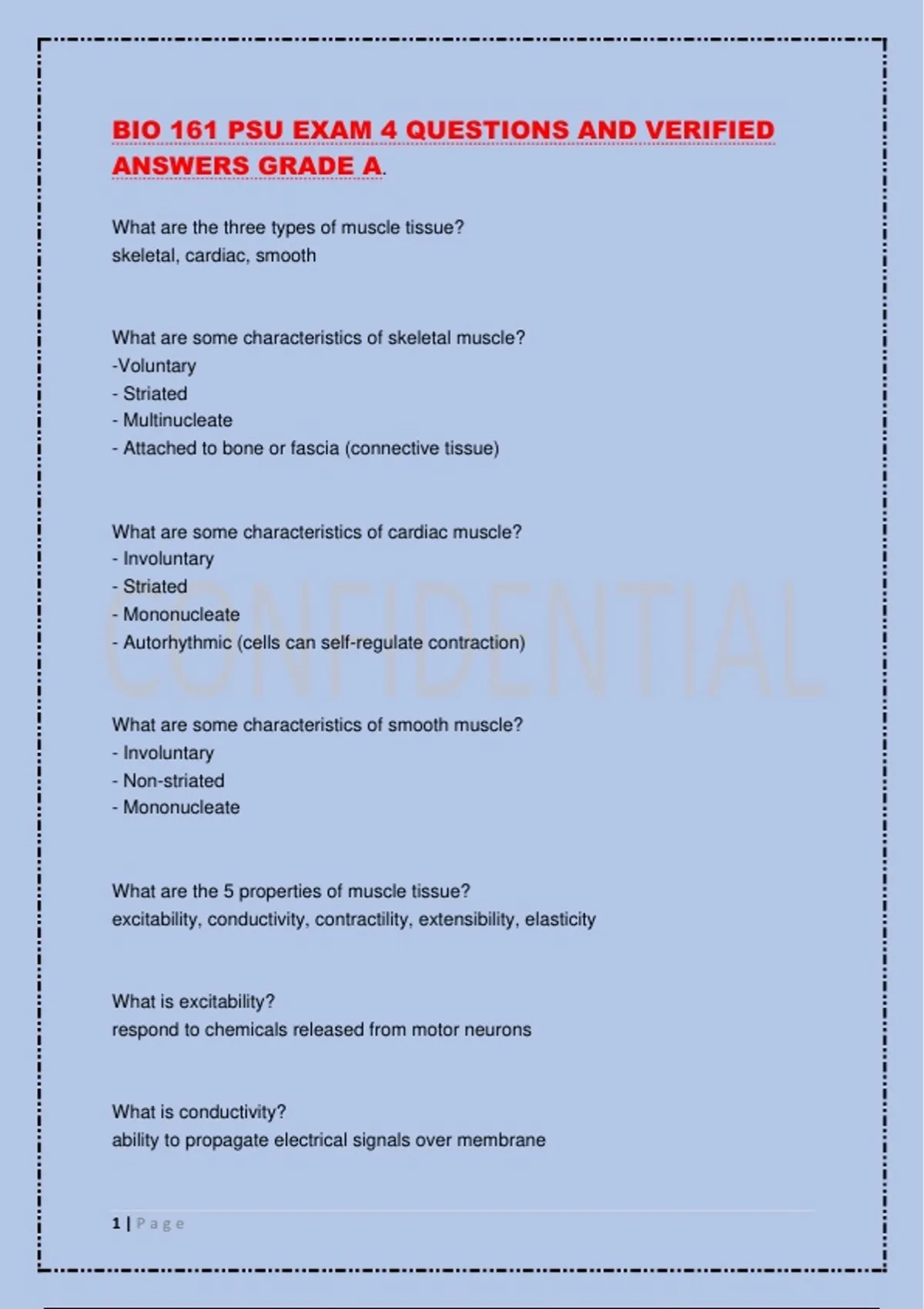 BIO 161 PSU EXAM 4 QUESTIONS AND VERIFIED
