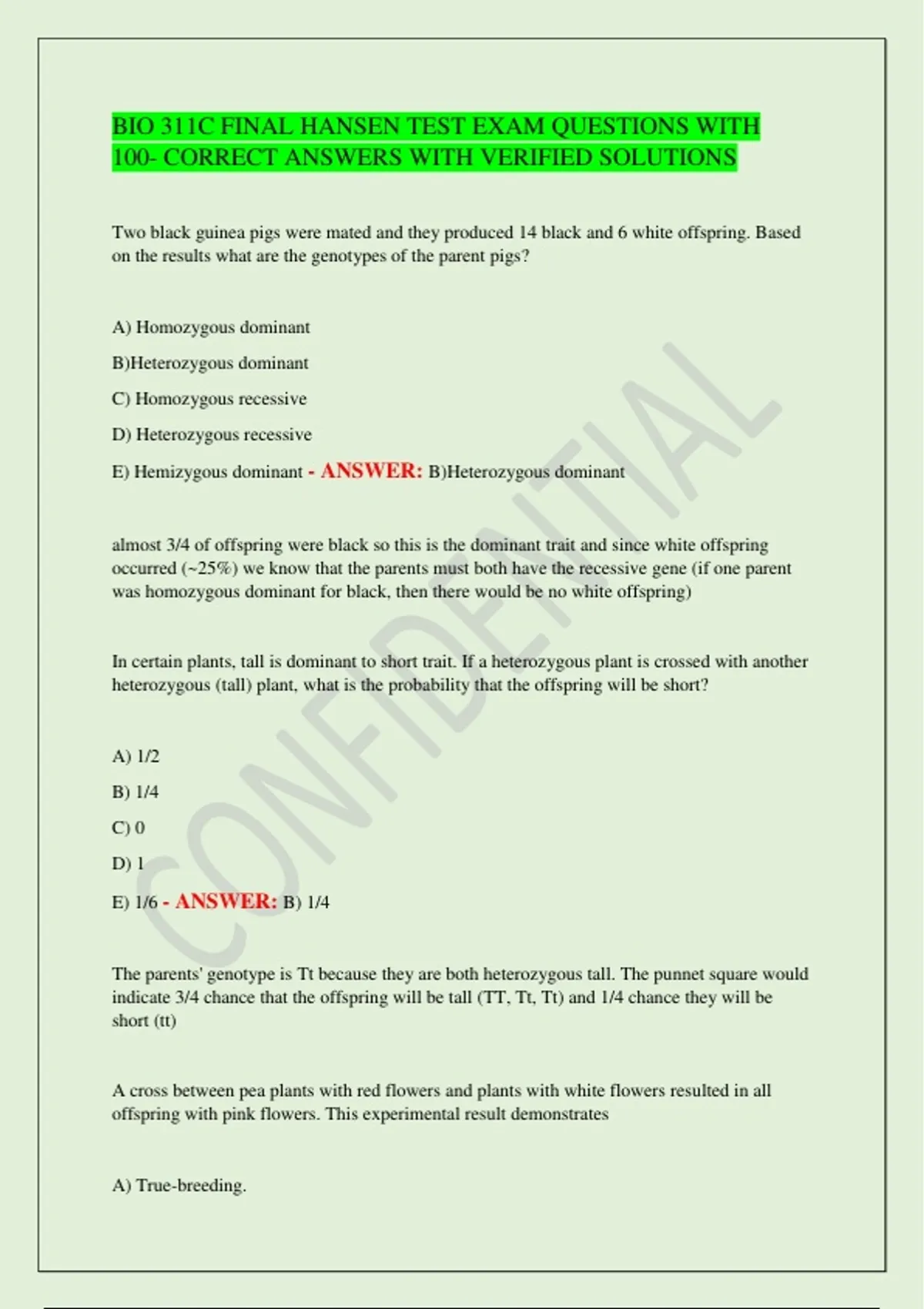 BIO 311C FINAL HANSEN TEST EXAM QUESTIONS WITH