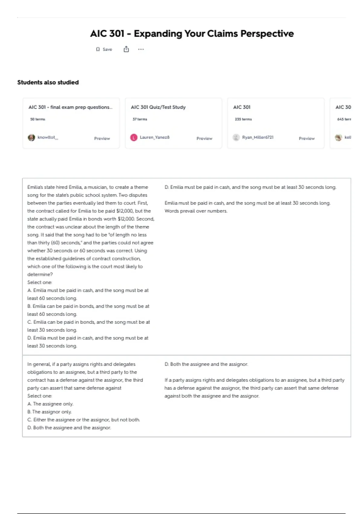 AIC 301 - Expanding Your Claims Perspective EXAM QUESTIONS AND VERIFIED CORRECT ANSWERS .pdf AIC 301 - Expanding Your Claims Perspective EXAM QUESTIONS AND VERIFIED CORRECT ANSWERS .pdf