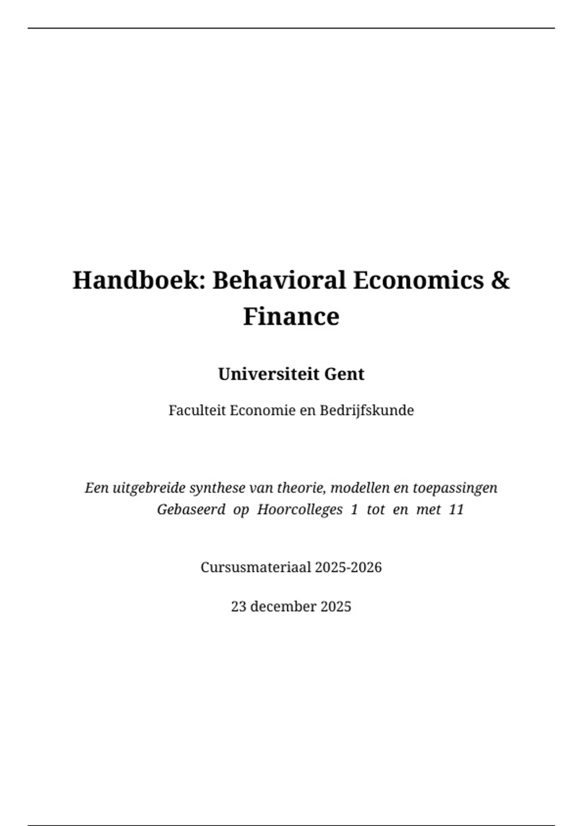 ,Behavioral Economics & Finance Academiejaar 2025-2026
