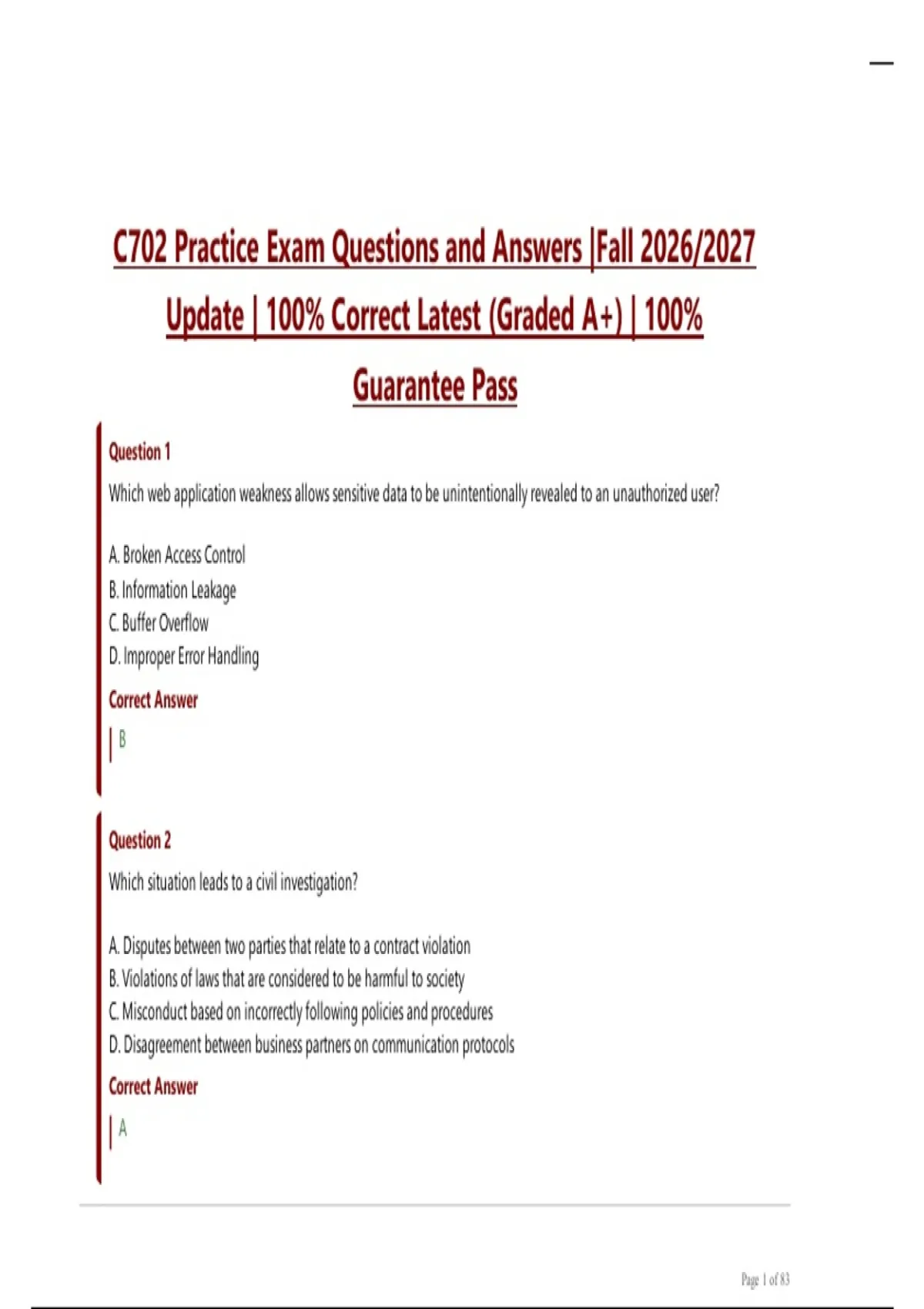 C702 Practice Exam Questions and Answers |Fall 2026/2027
