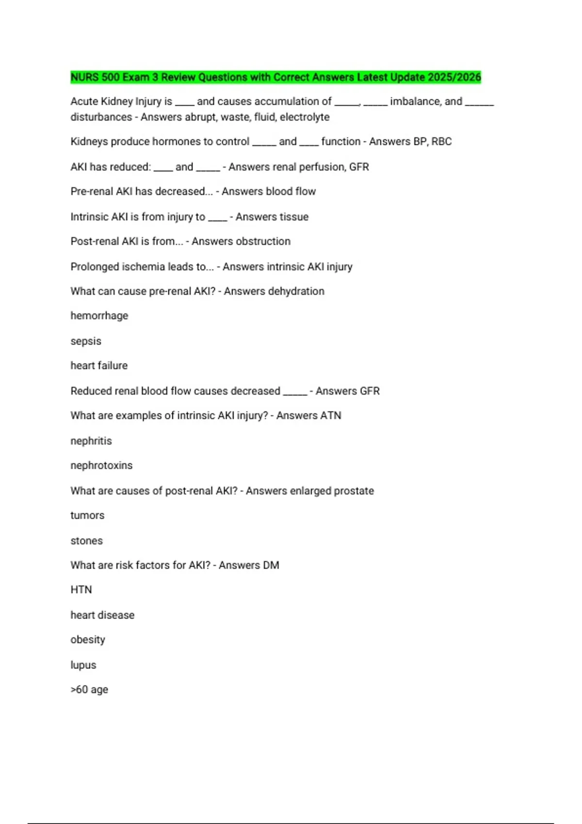 What are risk factors for AKI? - Answers DM