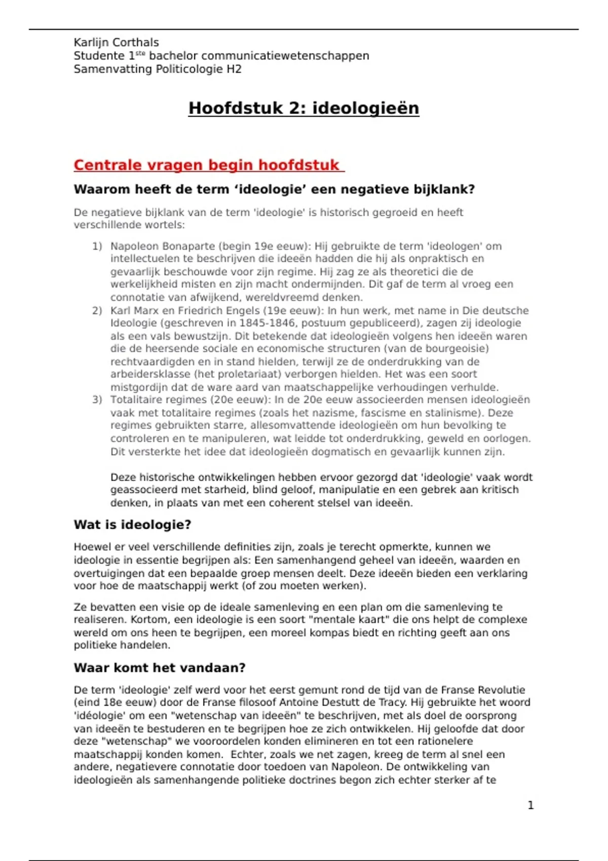 Samenvatting H2 Politicologie (geslaagd met 12/15 op TT!!)