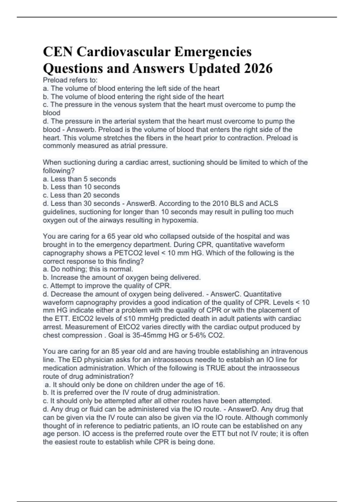 CEN Cardiovascular Emergencies Questions and Answers Updated 2026