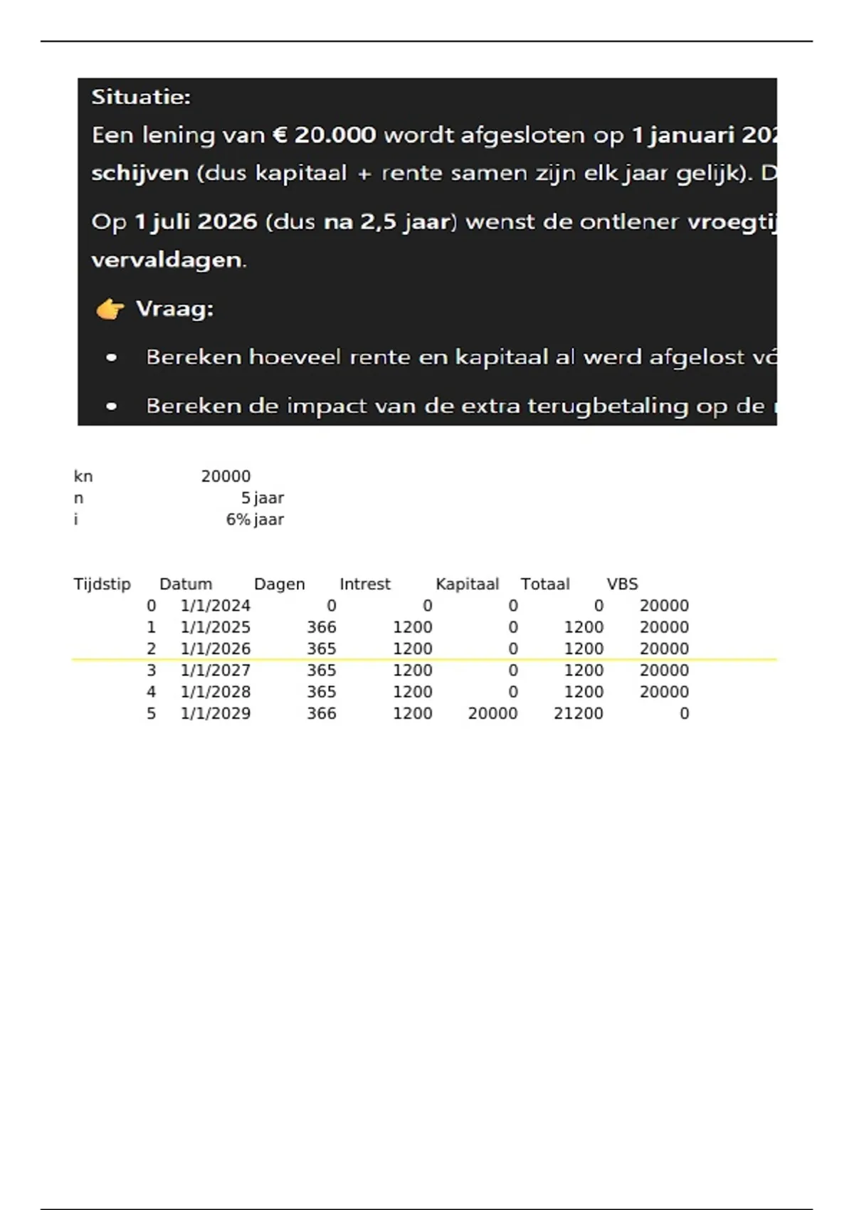 Tijdstip Datum Dagen Intrest Kapitaal Totaal VBS