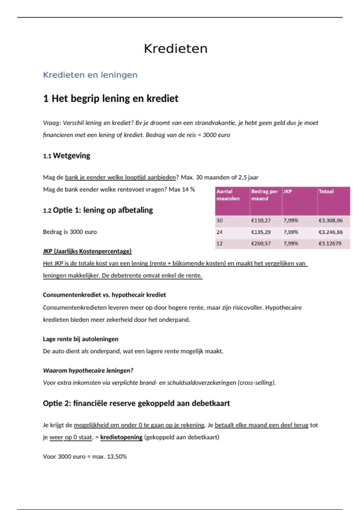 1 Het begrip lening en krediet