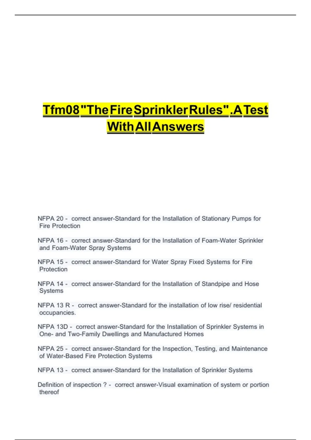 TFM08 THE FIRE SPRINKLER RULES .A TEST WITH ALL ANSWERS
