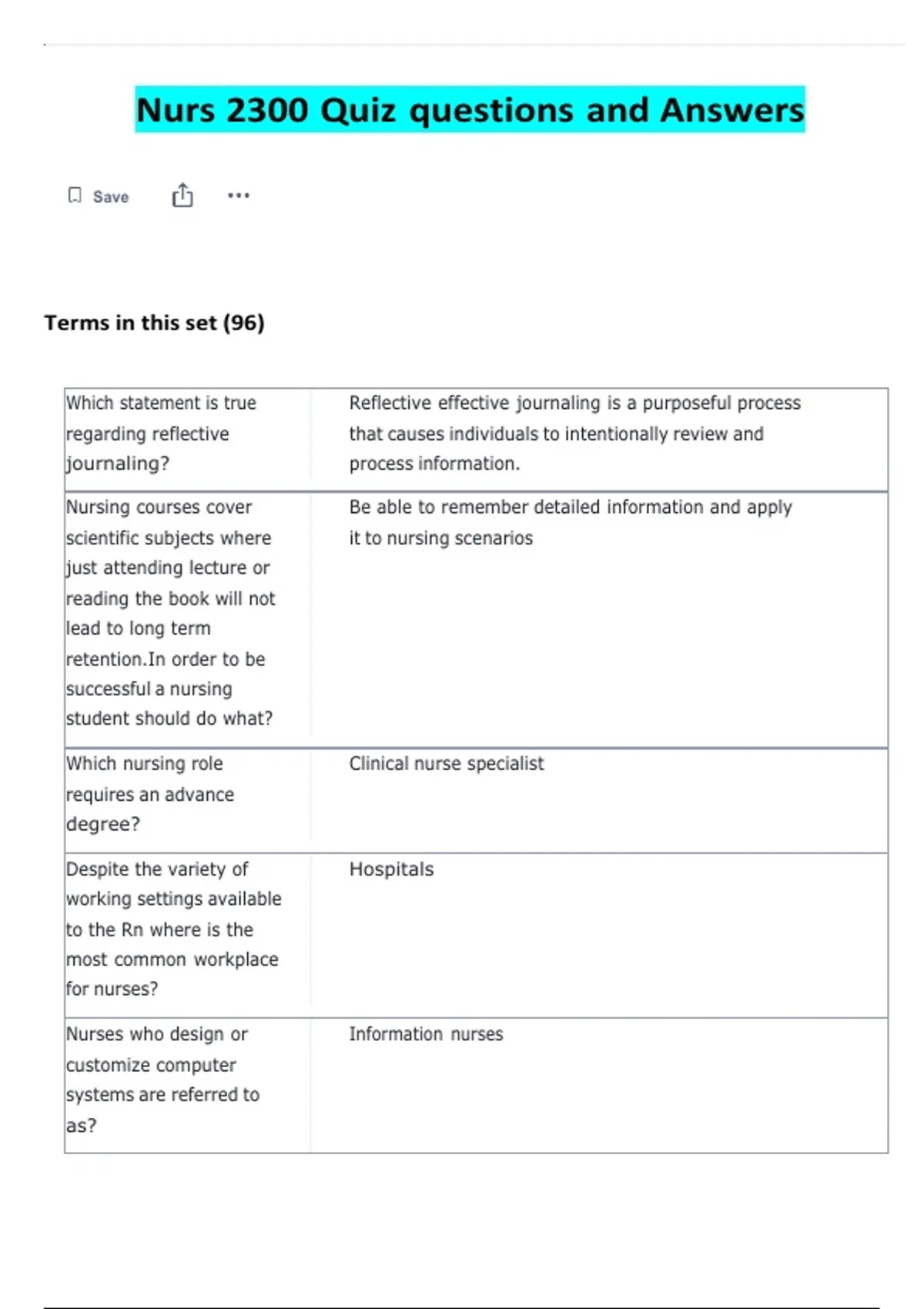 Nursing courses cover Be able to remember detailed information and apply
