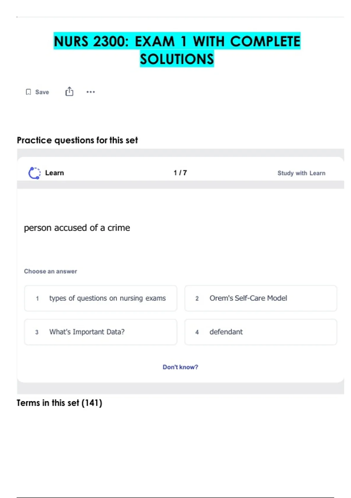 1 types of questions on nursing exams 2 Orem's Self-Care Model