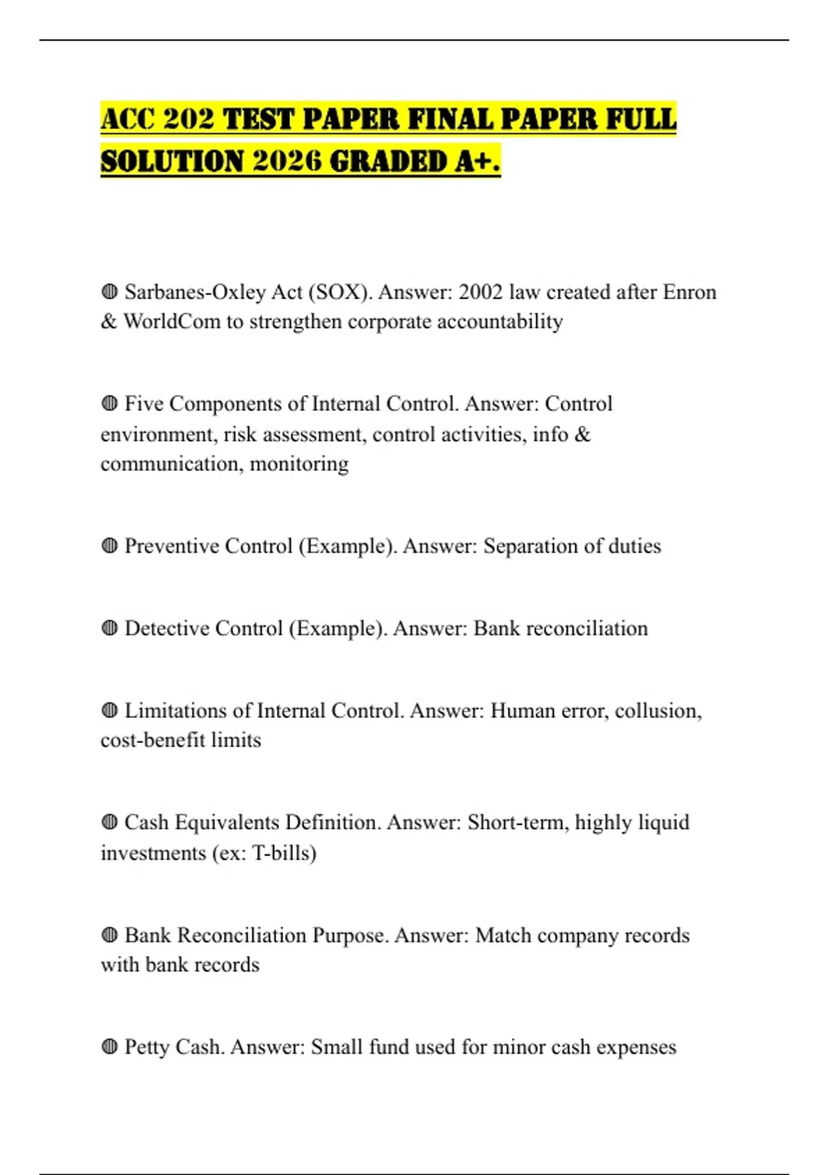 ACC 202 TEST PAPER FINAL PAPER FULL SOLUTION 2026 GRADED A+.