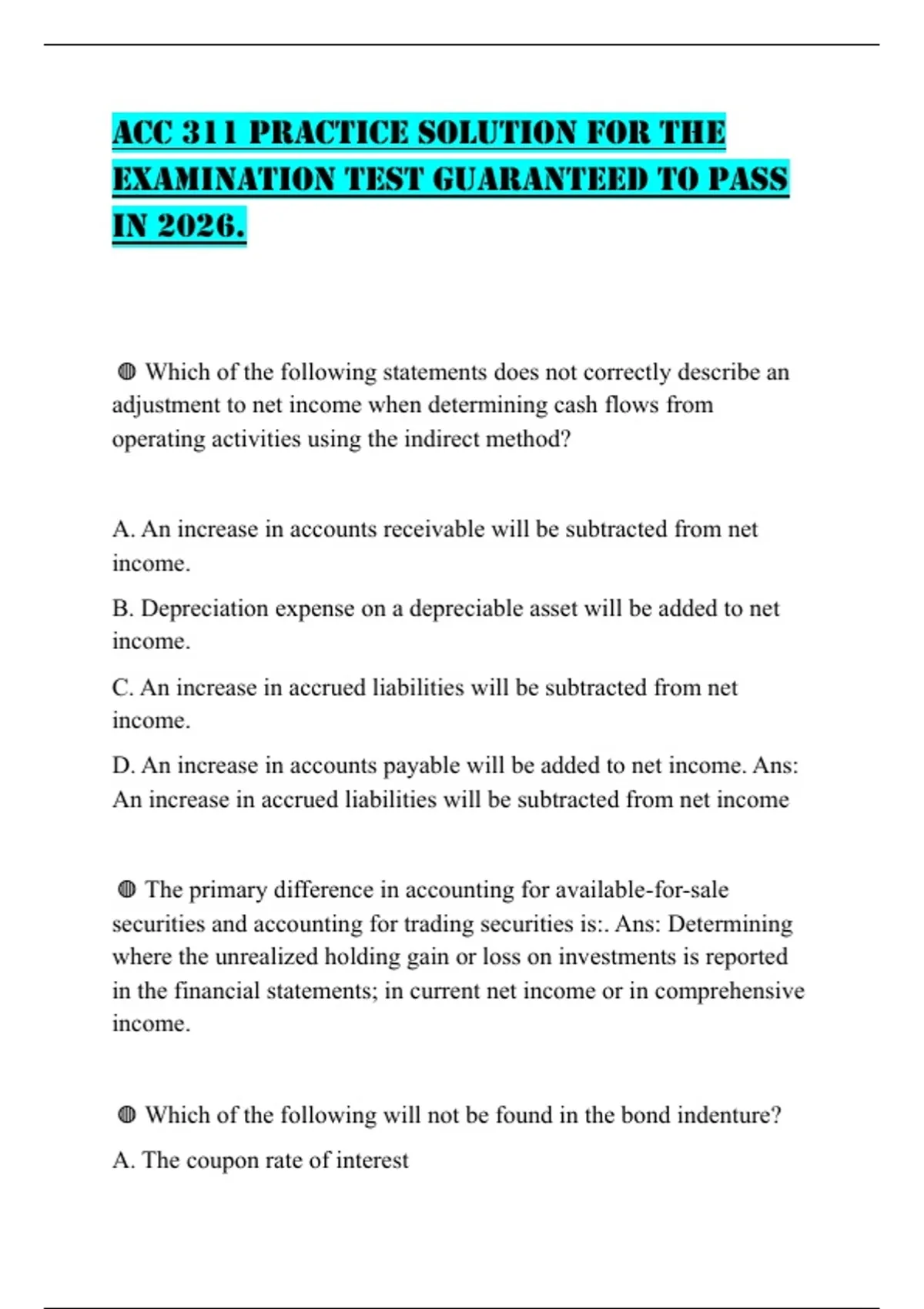D. An increase in accounts payable will be added to net income. Ans: