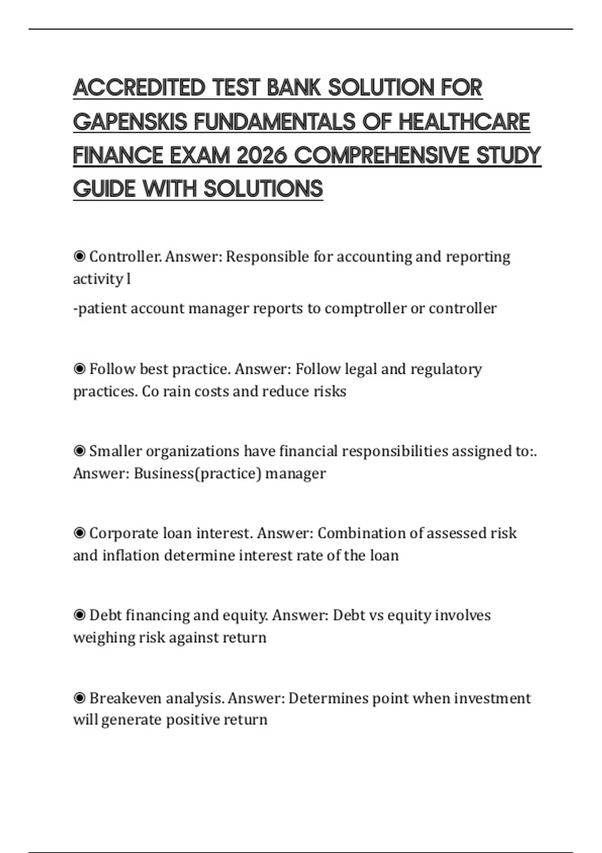 FINANCE EXAM 2026 COMPREHENSIVE STUDY