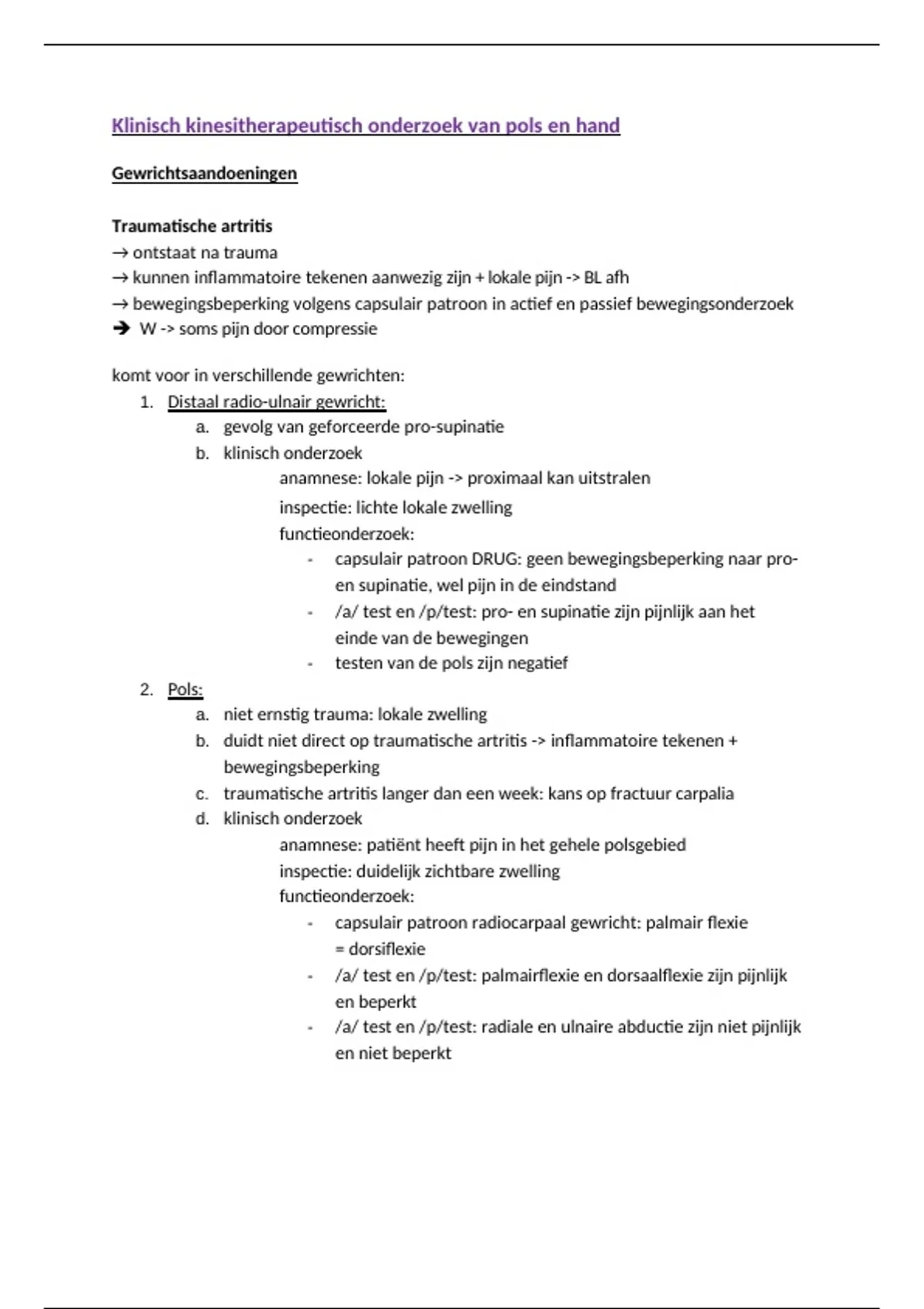 Klinisch kinesitherapeutisch onderzoek van pols en hand