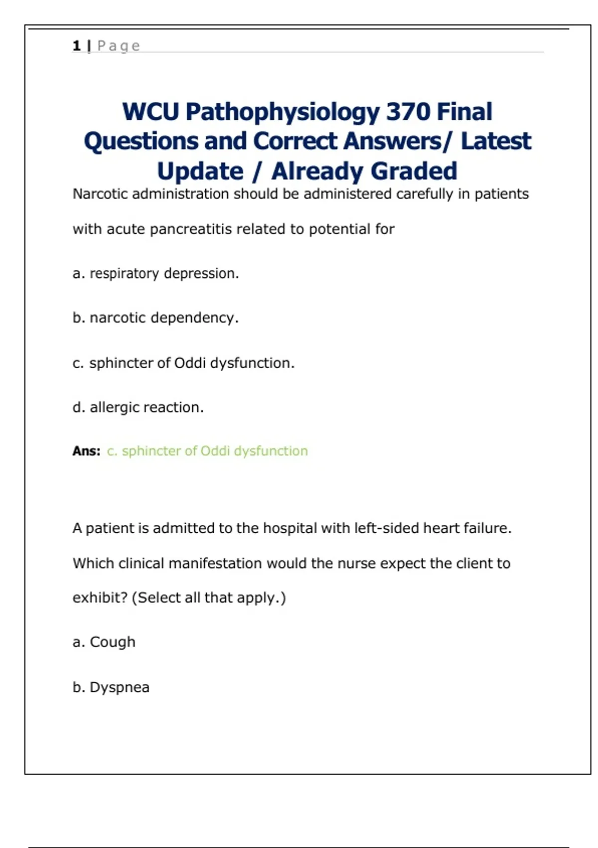 WCU Pathophysiology 370 Final Questions and Correct Answers/ Latest Update / Already GradedWCU Pathophysiology 370 Final Questions and Correct Answers/ Latest Update / Already GradedWCU Pathophysiology 370 Final Questions and Correct Answers/ Latest Update / Already GradedWCU Pathophysiology 370 Final Questions and Correct Answers/ Latest Update / Already GradedWCU Pathophysiology 370 Final Questions and Correct Answers/ Latest Update / Already GradedWCU Pathophysiology 370 Final Questions and Correct Answers/ Latest Update / Already GradedWCU Pathophysiology 370 Final Questions and Correct Answers/ Latest Update / Already GradedWCU Pathophysiology 370 Final Questions and Correct Answers/ Latest Update / Already Graded
