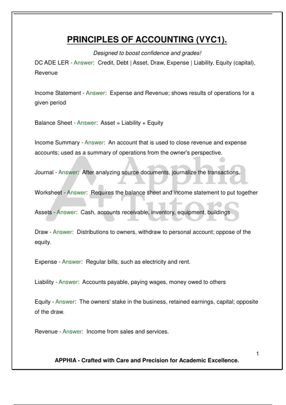 PRINCIPLES OF ACCOUNTING (VYC1). Designed to boost confidence and grades!