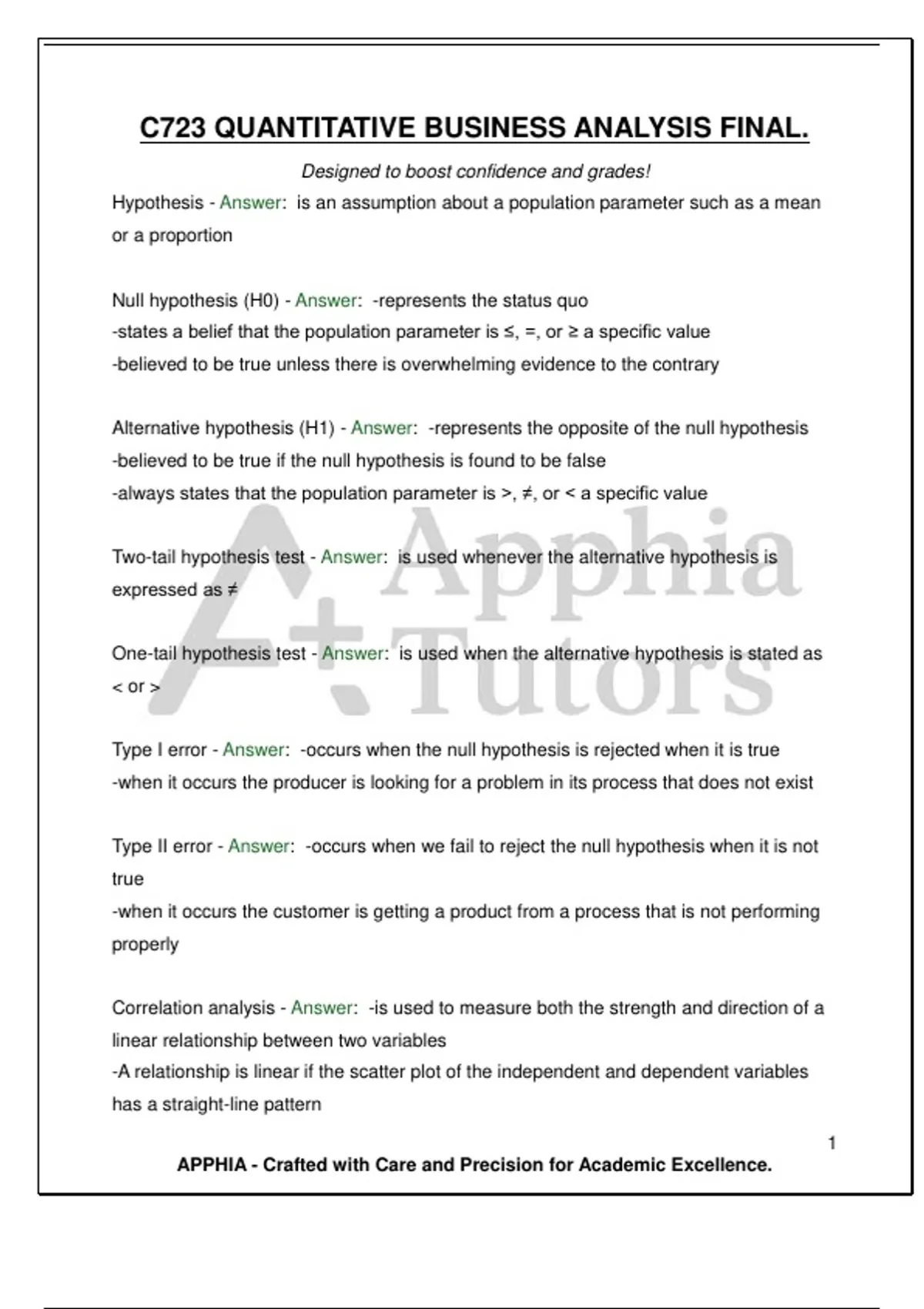 C723 QUANTITATIVE BUSINESS ANALYSIS FINAL. Designed to boost confidence and grades!