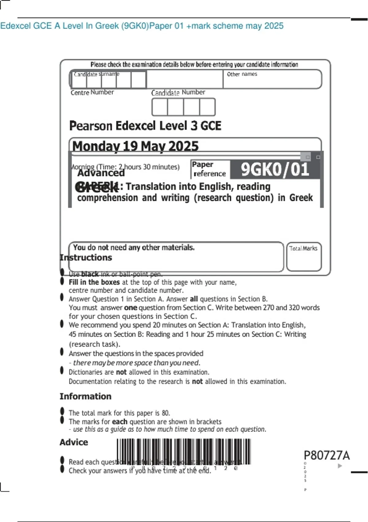 • We recommend you spend 20 minutes on Section A: Translation into English,