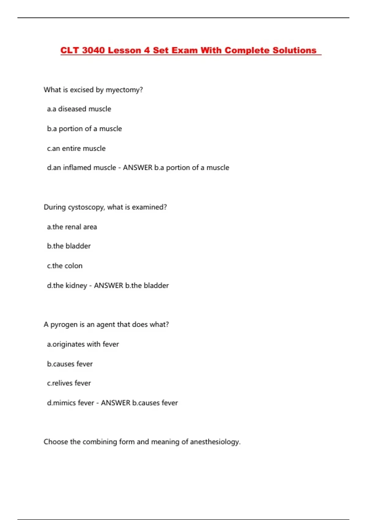 CLT 3040 Lesson 4 Set Exam With Complete Solutions