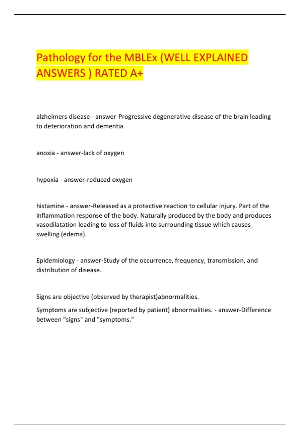 Pathology for the MBLEx (WELL EXPLAINED ANSWERS ) RATED A+