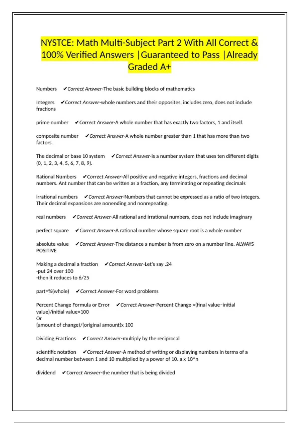 NYSTCE: Math Multi-Subject Part 2 With All Correct & 100% Verified Answers |Guaranteed to Pass |Already Graded A+
