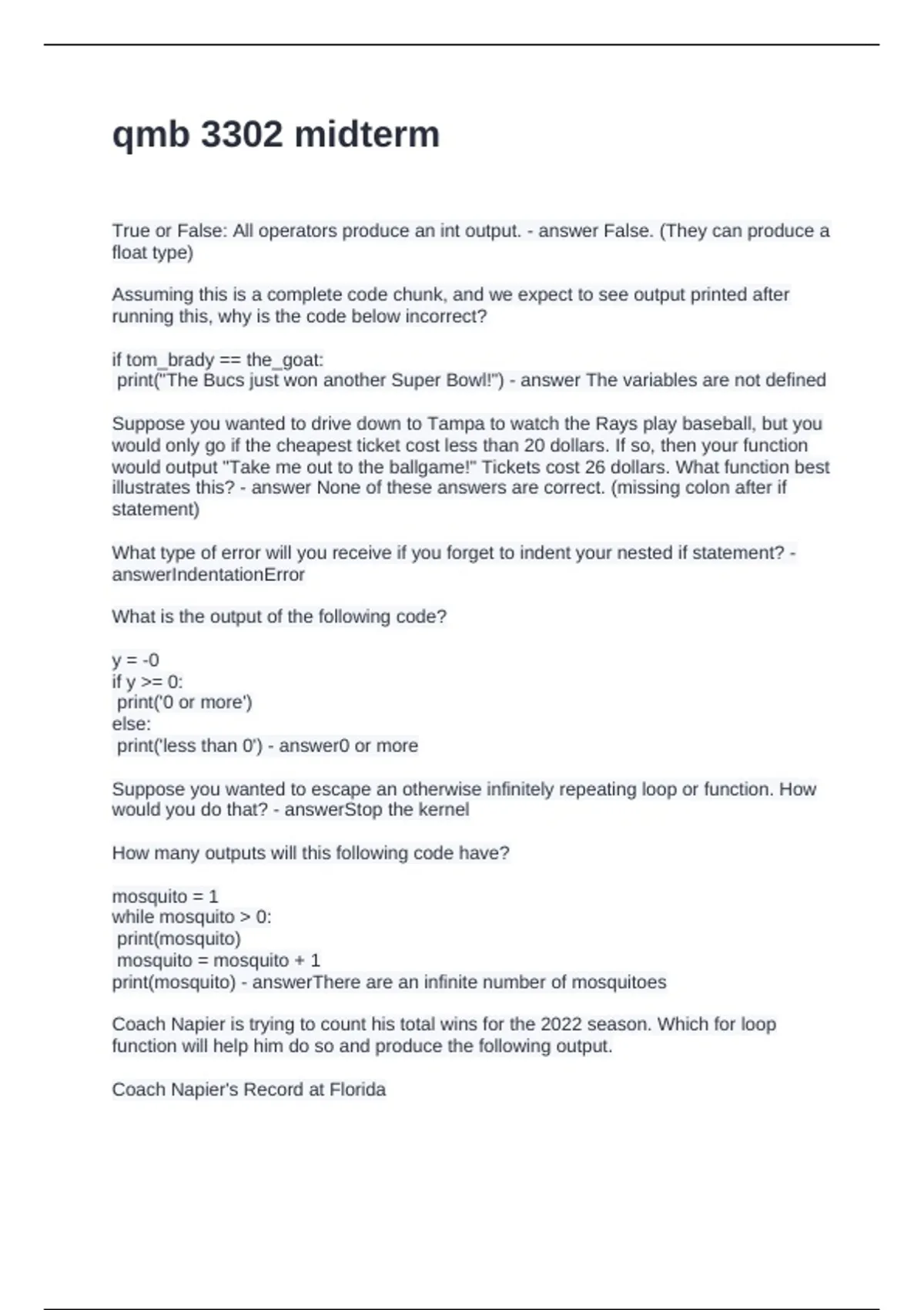 Wins to date = 3 - answerprint('Coach Napier's Record at Florida')