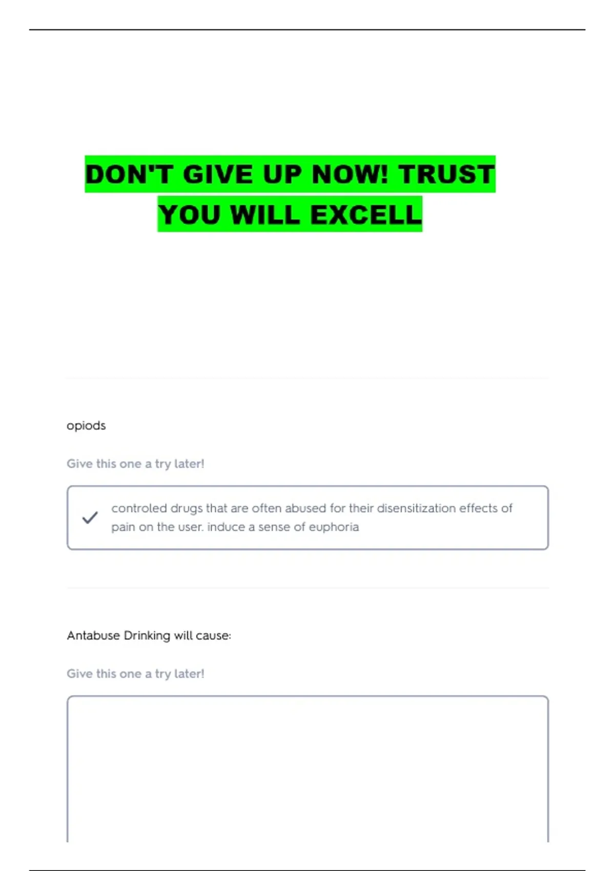 Antabuse Drinking will cause:
