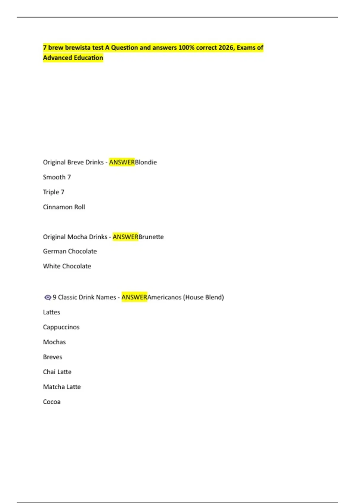 7 brew brewista test A Question and answers 100% correct 2026, Exams of