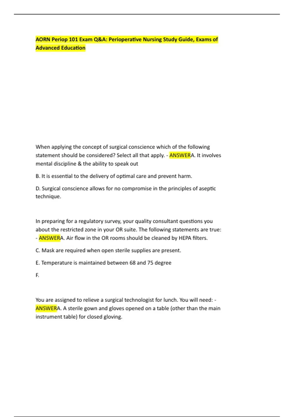 AORN Periop 101 Exam Q&A: Perioperative Nursing Study Guide, Exams of